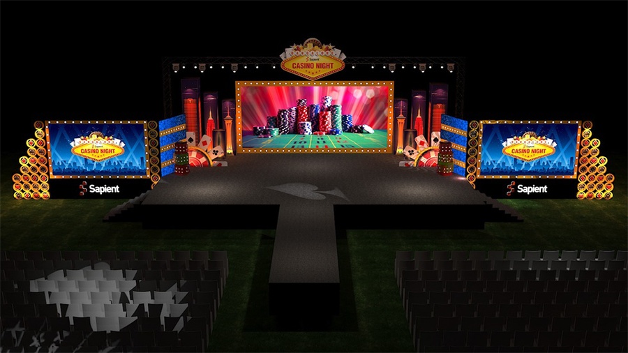 Sapient是一家營銷和咨詢公司,為客戶提供業(yè)務(wù)、營銷和技術(shù)服務(wù)。該活動是印度古爾岡地區(qū)分公司的年會活動現(xiàn)場效果圖,整個活動現(xiàn)場的策劃設(shè)計緊貼賭城之夜的風(fēng)格,每個細(xì)節(jié)都圍繞賭城展開,一起去現(xiàn)場看看吧。