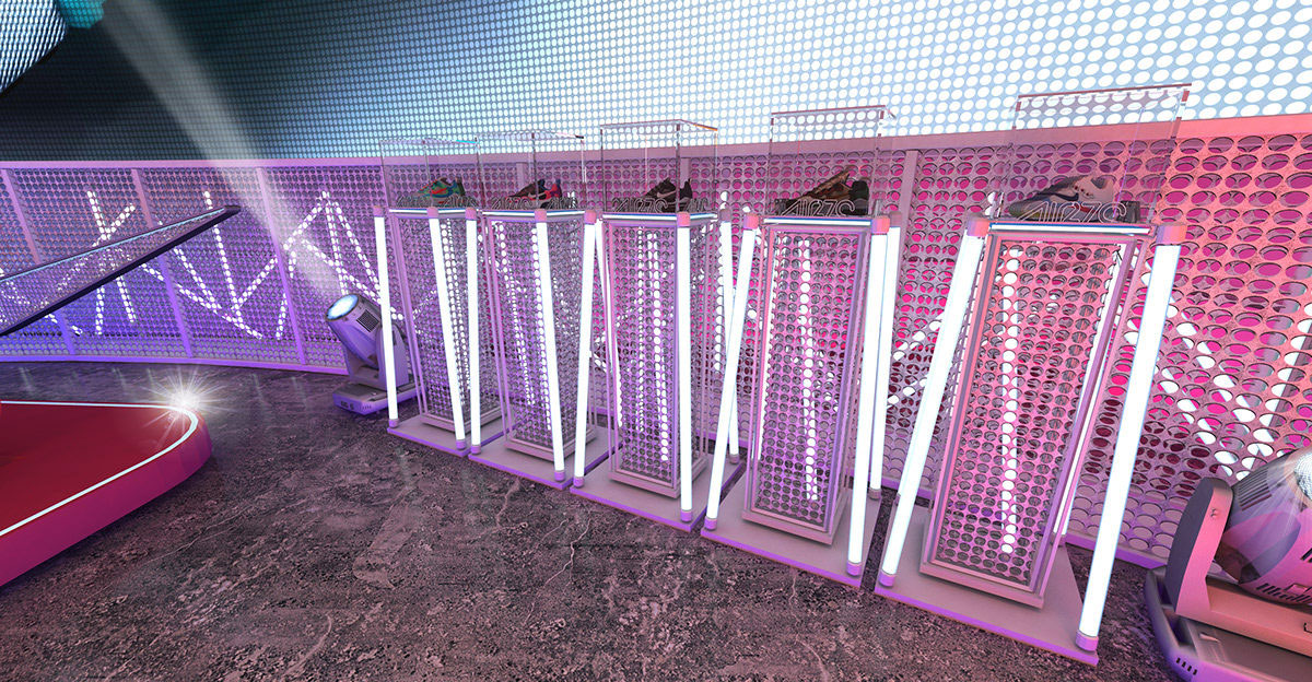 nike耐克一直將激勵(lì)全世界的每一位運(yùn)動員并為其獻(xiàn)上最好的產(chǎn)品視為光榮的任務(wù)。為此,此次nike發(fā)布會策劃動感十足,工業(yè)風(fēng)的主體下,以粉色為主色調(diào),輔之多彩色調(diào)作為點(diǎn)綴,并將舞臺設(shè)計(jì)成跑步機(jī)的形式,更彰顯了其運(yùn)動品牌的屬性。