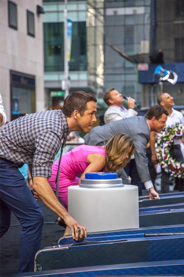 此次活動(dòng)搭建了一個(gè)高空索具結(jié)構(gòu),將五個(gè)巨大的電影中的“蝸?!钡醯铰蹇朔评諒V場(chǎng)大樓的正面,同時(shí)還制作了大型的滑雪球游戲機(jī),并邀請(qǐng)了電影中的明星瑞安·雷諾茲、馬特·勞爾以及《今日秀》的主持人參與滑雪球游戲來(lái)幫助蝸牛向上爬。