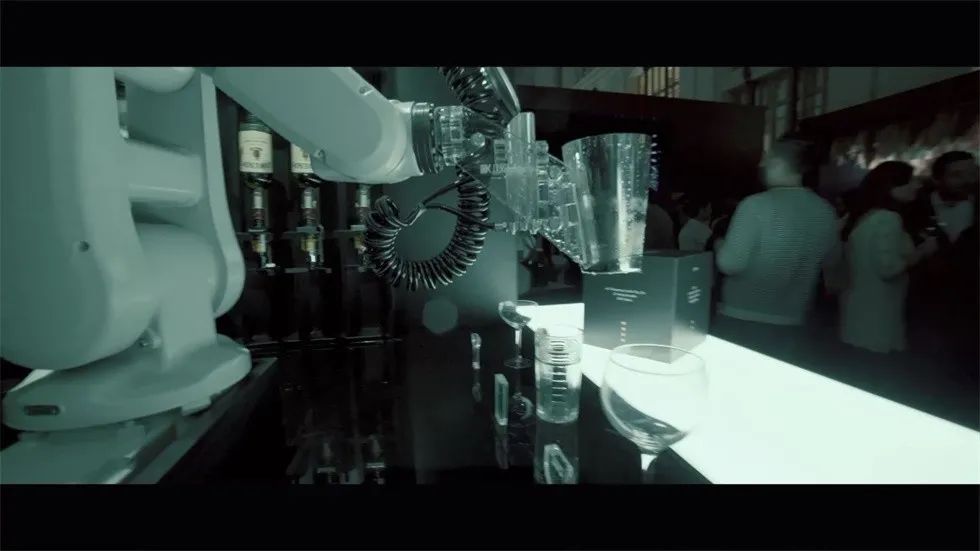 創(chuàng)新——兩個(gè)機(jī)器人“調(diào)酒師”為客人們提供與品牌名稱和顏色相同的雞尾酒。