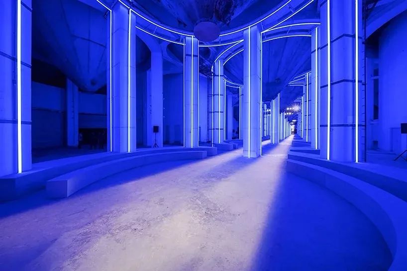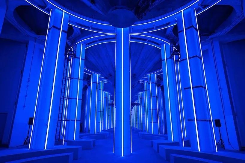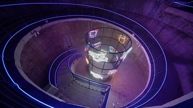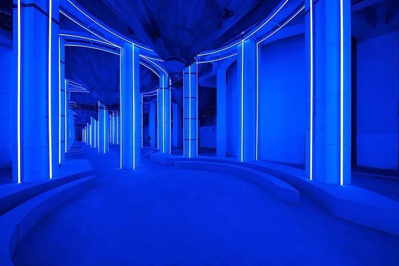 民生碼頭8萬噸筒倉是亞洲最大的筒倉之一,以前是小麥和谷物的倉庫。AMO和prada將其描述為一個(gè)“無意的紀(jì)念碑”,建筑的原始特征被保留下來,作為裝置的一部分——名為“照亮的vista”。霓虹燈的排列勾勒出大廳的工業(yè)形式,并產(chǎn)生一個(gè)發(fā)光的光線,閃爍在微妙的柔和的顏色。