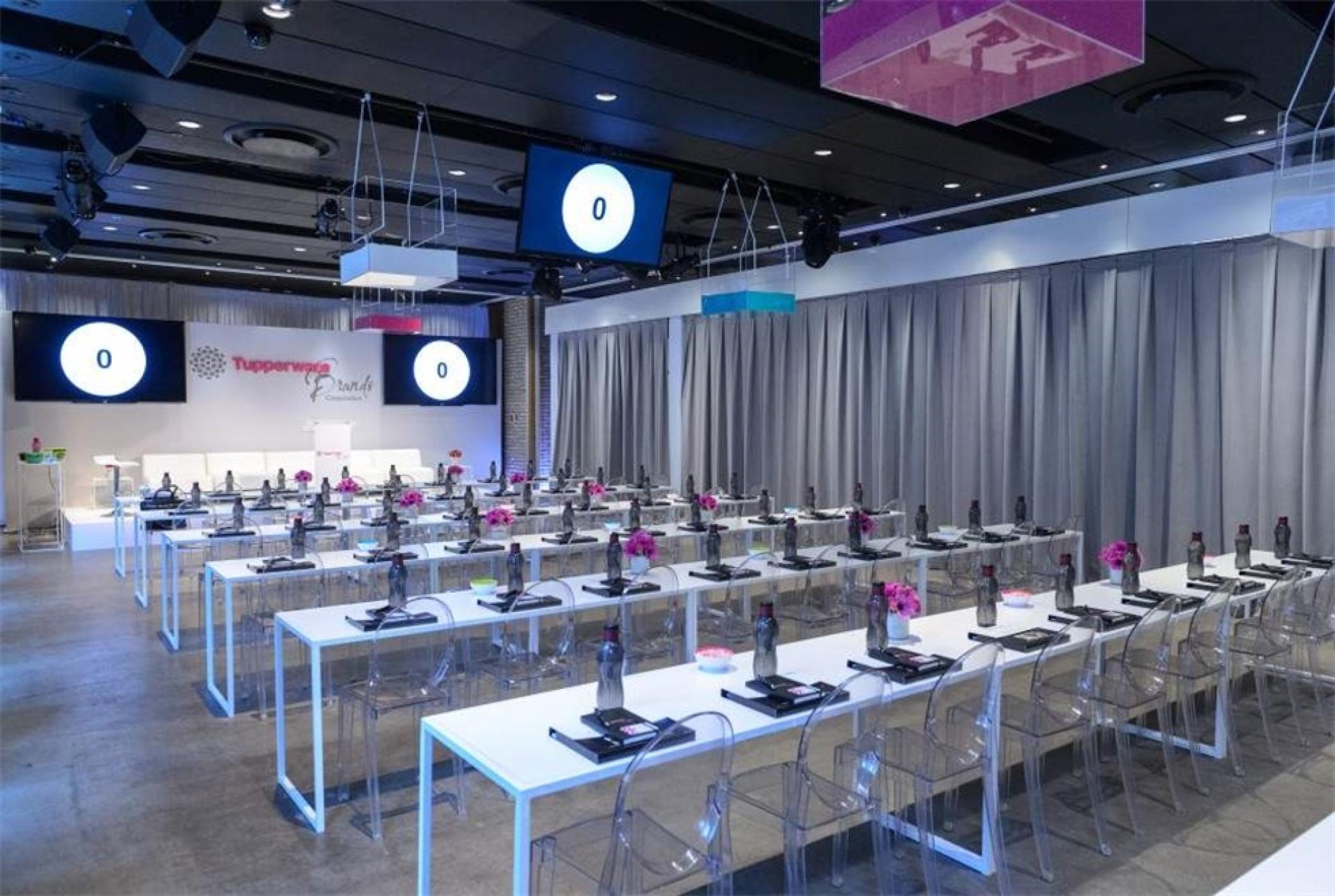 特百惠產(chǎn)品美國發(fā)布會現(xiàn)場很小眾,但卻把產(chǎn)品展示、產(chǎn)品會議做了很好的分區(qū),整體看著更清晰明了。