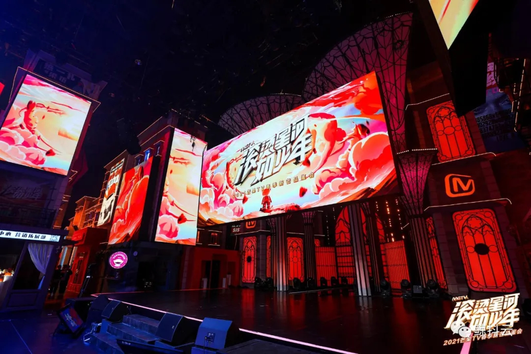 會場內(nèi)最奪人眼球的便是舞臺的精美設(shè)計(jì),足以說明“以小見真章”的真正含義:懸空的巨幕垂直于舞臺,高聳的設(shè)計(jì)拉長了舞臺縱向視覺比,而大小不一的小屏于舞臺兩側(cè)參差排列,錯落懸掛,不僅拉長了會場的橫向比例,更能讓觀眾視野豐富多彩,像極了中央舞臺所展開的機(jī)械羽翼,沉浸式地感受立體視聽效果。