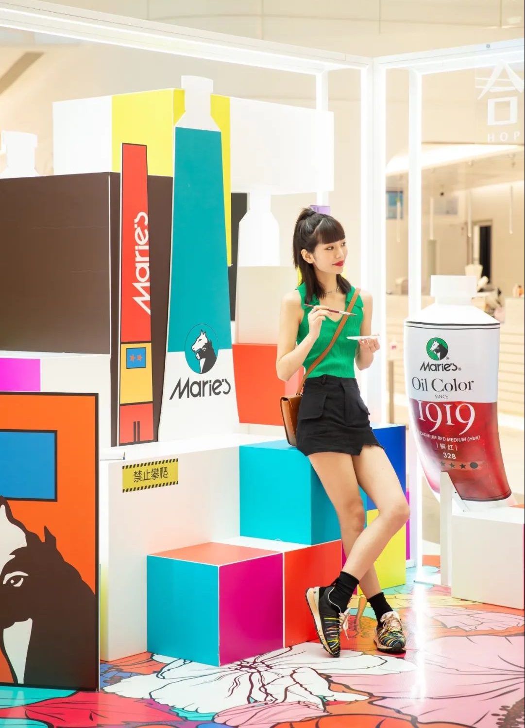 MARIE’S馬利顏料發(fā)燒友必須打卡的藝術(shù)裝置,按照水彩顏料同比列放大還原,讓人忍不住駐足一探究竟!瓶身上的雙色馬頭logo,217印度黃色號(hào),顏料被擠出來的場(chǎng)景,每個(gè)小細(xì)節(jié)都被還原出來。坐在超大水彩顏料上擺個(gè)POSE,今日份朋友圈首圖達(dá)成!