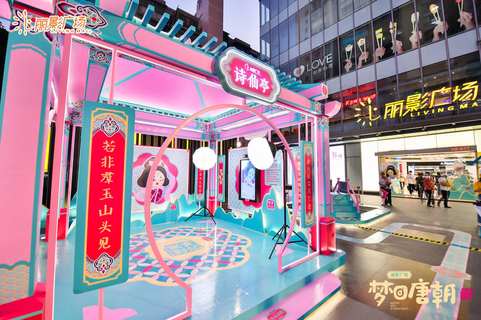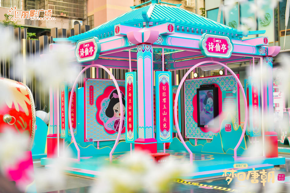 時(shí)逢十幾年,麗影廣場(chǎng)推出“夢(mèng)回唐朝”大型國潮藝術(shù)裝置展,以影貴妃為主題精心打造大唐時(shí)代的宮廷和民間繁榮生活,包括有皇家禮遇、吟唱唐宋詩詞、千年宮廷雅樂、瑰麗的霓裳樂舞、繁華東西市集等九大情景,帶來一次沉浸式體驗(yàn)的極致享受,向中華五千多年傳統(tǒng)文化致敬,喚起廣大民眾對(duì)于國潮文化的熱愛。