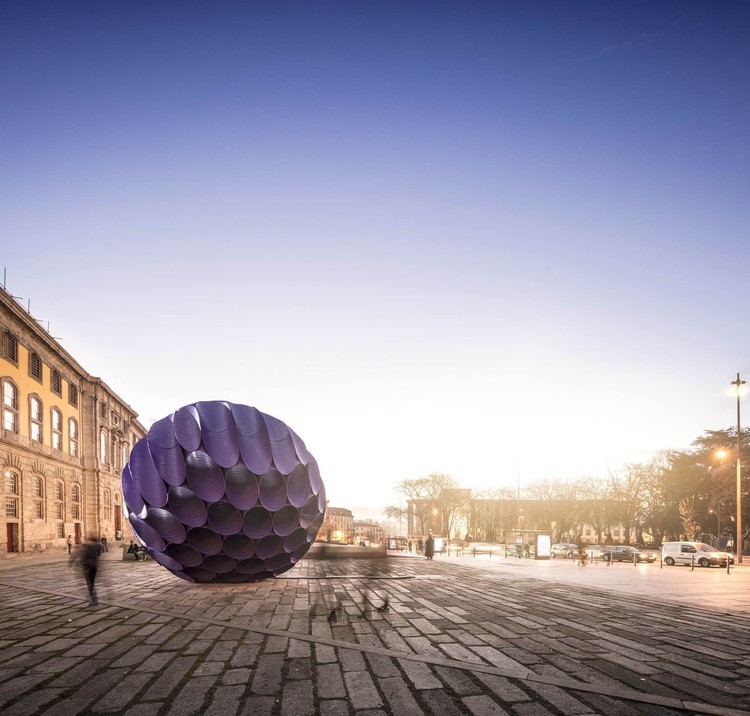 Eclipse 裝置是波爾圖歷史中心被列為聯(lián)合國教科文組織世界遺產(chǎn)的20周年慶活動中的一個重要標志物。作為一個臨時裝置,Eclipse是由FAHR 021.3 建筑工作室設(shè)計的一個項目,這個球形物體將城市廣場的中心暫時的轉(zhuǎn)到它身上。來自FAHR 021.3 建筑工作室的Filipa Frois Almeida和Hugo Reis介紹說:“自從該裝置被放置到這個公共場所以來,很好的促進了與人們之間的互動。Eclipse 被放置在一個偏離中心的位置,這樣會讓路人從不同的角度重新審視Amor de Perdi??o廣場。它打破了這里原有的安靜環(huán)境,采用了一個大膽的手法和色彩。 這種設(shè)計方式讓該裝置和其周圍環(huán)境之間建立了一種大膽的關(guān)系,形成了一個出人意料的對比模式,同時讓行人停下腳步從另一個角度來欣賞。