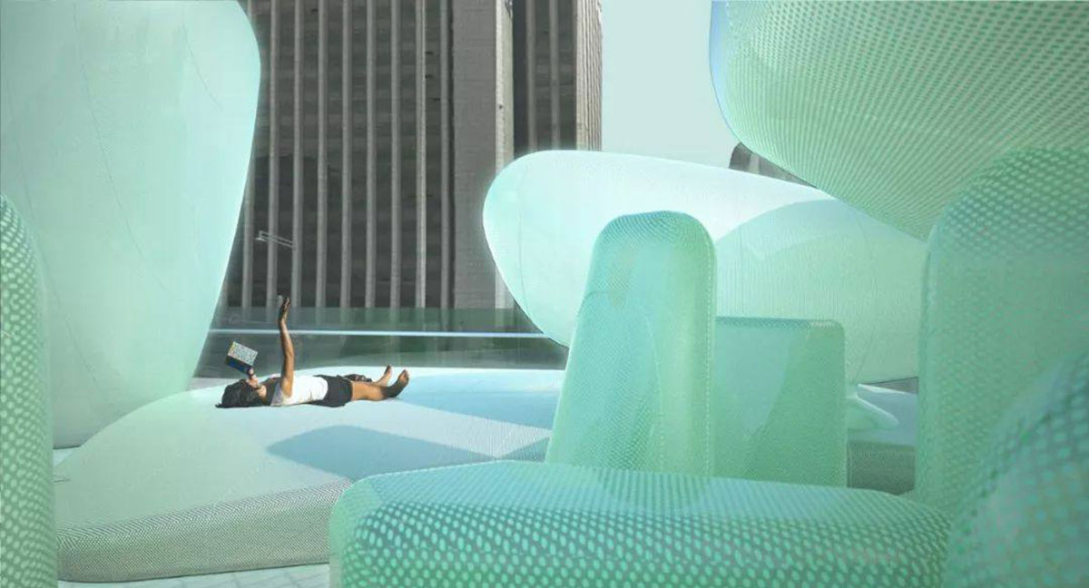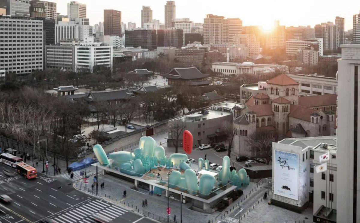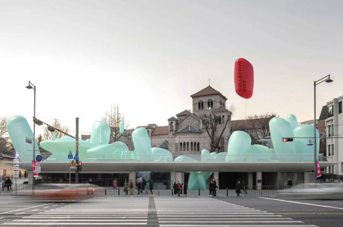 New Korean Garden是一個Ins風(fēng)會議和活動空間,計劃放置在韓國首爾的屋頂上,這是一個綠松石,鵝卵石般的充氣設(shè)備。