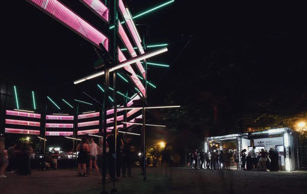 Kontakt是結(jié)合聲音,燈光和運(yùn)動(dòng)的生動(dòng)裝置。觀眾們沉浸在各種氛圍中,明亮、溫和,有時(shí)甚至更暗,展現(xiàn)著裝置的魅力。該裝置獨(dú)立且有交互性,無需外部干預(yù)就可以不斷發(fā)展,展現(xiàn)其不同的狀態(tài)。該交互式項(xiàng)目允許公眾通過修改某些指令來與裝置互動(dòng),從而進(jìn)行馴服這只多變生物的嘗試與體驗(yàn)。每個(gè)主題都會(huì)使觀看者沉浸在特定的氛圍內(nèi),觀看者也可以成為主體,與其一起進(jìn)行表演。