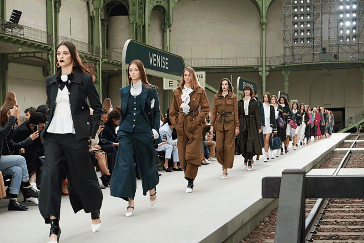 每一季CHANEL都會有一個主題,而這次呢,就是火車站,CHANEL將大皇宮改造成一個美術(shù)學(xué)院派風(fēng)格的火車站,一個典型的巴黎和永恒氛圍的火車站。鐵路、月臺、以及等候的座椅、售票窗口等,反正火車站有的這里都有!