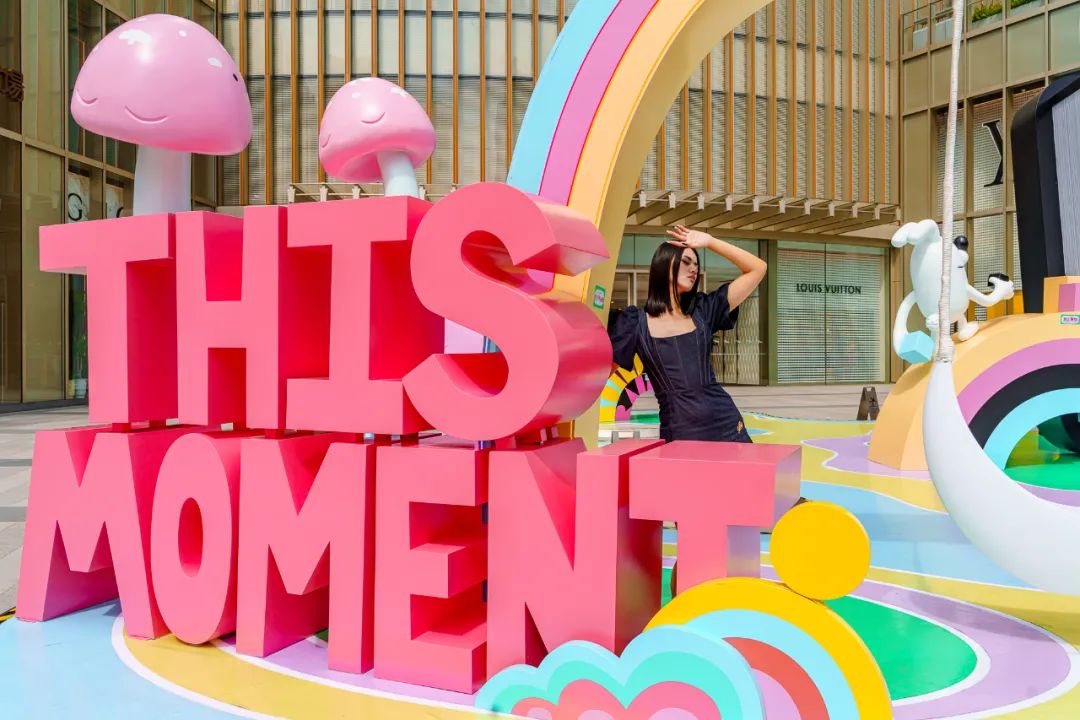 本次Jeremyville以“Enjoy Life Enjoy Love”為主題,希望能為大家傳遞愛(ài)的力量。不同的裝置圍繞這個(gè)主題,矗立在港匯恒隆正門,遠(yuǎn)遠(yuǎn)望去就讓人忍不住一探究竟。整個(gè)裝置最吸引人的,就要屬這個(gè)由彩虹橋和月亮秋千組成的互動(dòng)區(qū)域了。意欲著希望的彩虹搭載著新月,忍不住坐上秋千,感受孩童般的無(wú)憂快樂(lè),心情瞬間大好,讓人感嘆快樂(lè)就是可以如此簡(jiǎn)單!在一旁的“THIS MOMENT”區(qū),兩顆可愛(ài)的蘑菇頭相互依偎在一起,則要提醒大家適時(shí)的放下工作和煩惱,享受當(dāng)下的美好。還有可以找回童年回憶的蹺蹺板,正在搭建“專屬彩虹”的卡通小人兒,都在時(shí)刻提醒大家去發(fā)現(xiàn)生活中真實(shí)的小確幸哦。