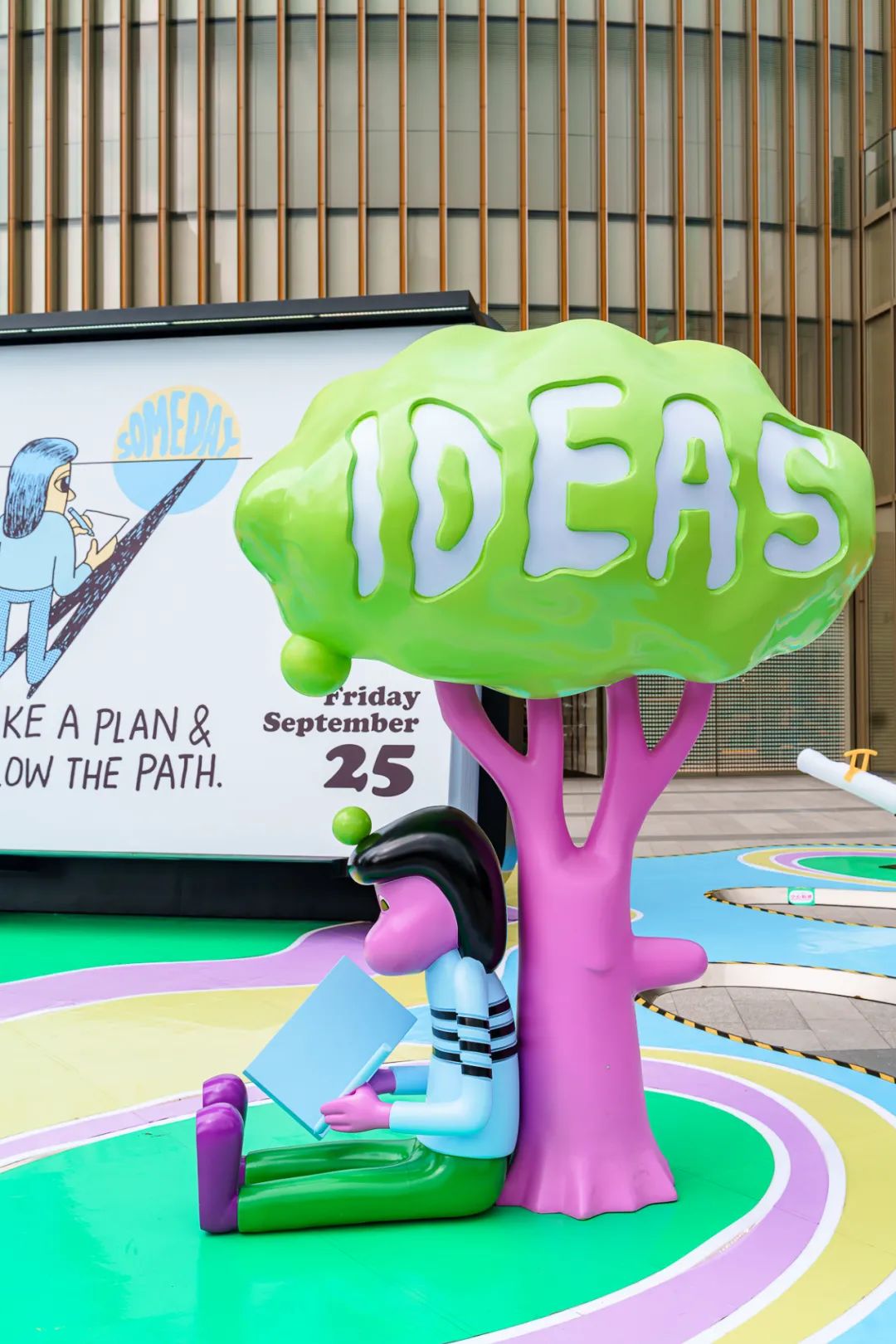 一向會(huì)玩兒的港匯恒隆,本次聯(lián)手被《紐約時(shí)報(bào)》評(píng)為世界前100位插畫(huà)師之一的藝術(shù)家Jeremyville,帶來(lái)正能量滿滿,極具個(gè)人風(fēng)格特色的藝術(shù)裝置。這位鬼才藝術(shù)家的作品遍布全球,曾在巴黎、首爾、紐約等地舉辦展覽,Jeremyville的作品總是充滿無(wú)限的想象力,并帶有蓬勃向上的生命力。