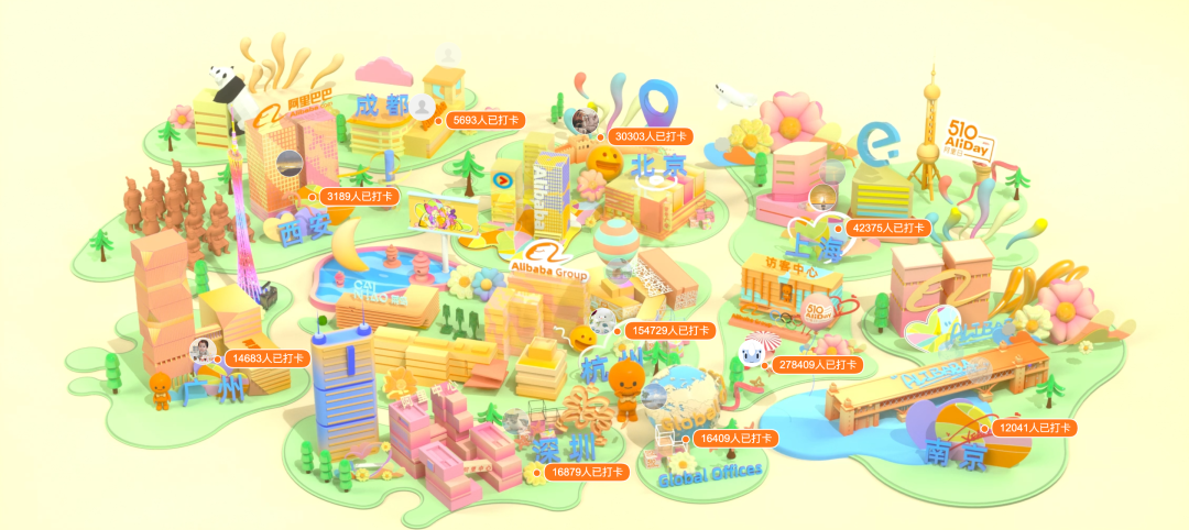今年基于疫情的原因,今年的阿里日阿里只邀請部分親友代表到園區(qū)游玩參觀,誠邀10多萬親友們通過線上“云游園”的形式參與到阿里日當(dāng)中。雖然大部分親友不入園,但是感恩不缺席。今年阿里在杭州大本營西溪園區(qū)以及其他各地辦公園區(qū)進(jìn)行精心布置,打造了一座極具年輕、潮酷、充滿活力的大型游樂園。