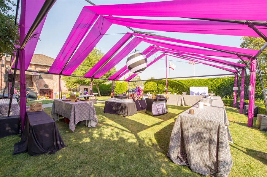 戶外派對(duì)活動(dòng)策劃的粉紅色窗簾搭建的露天帳篷舒適感極強(qiáng)