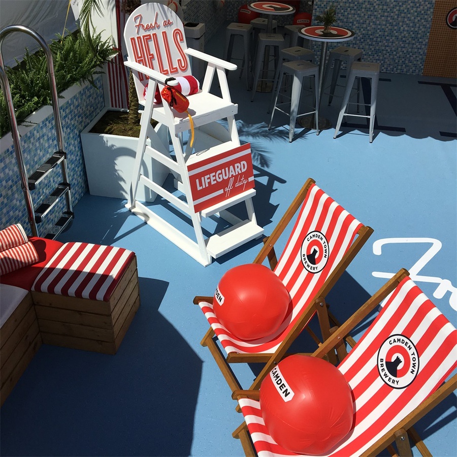 今年的卡姆登鎮(zhèn)啤酒“新鮮地獄”泳池派對活動引起了不小的轟動,現(xiàn)場從跳水板到救生圈,游泳池梯子到泳道分隔線,現(xiàn)場所有的一切細(xì)節(jié)都確保了一個引人注目的游泳池風(fēng)格的派對空間。