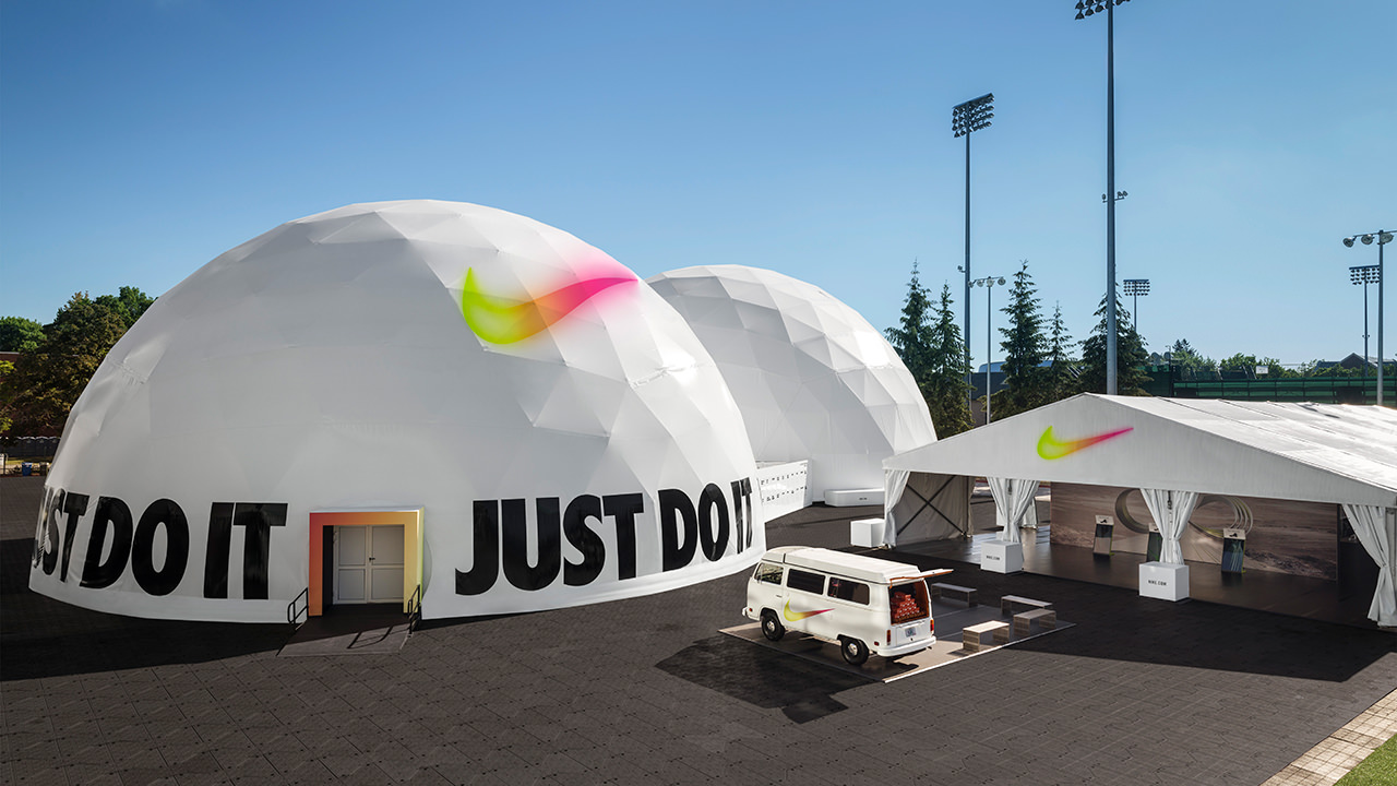 耐克在俄勒岡州尤金的奧林匹克田徑試驗(yàn)中創(chuàng)造一種品牌體驗(yàn),在一系列巨大的封閉圓頂中精心打造了兩種不同的精英體驗(yàn)。