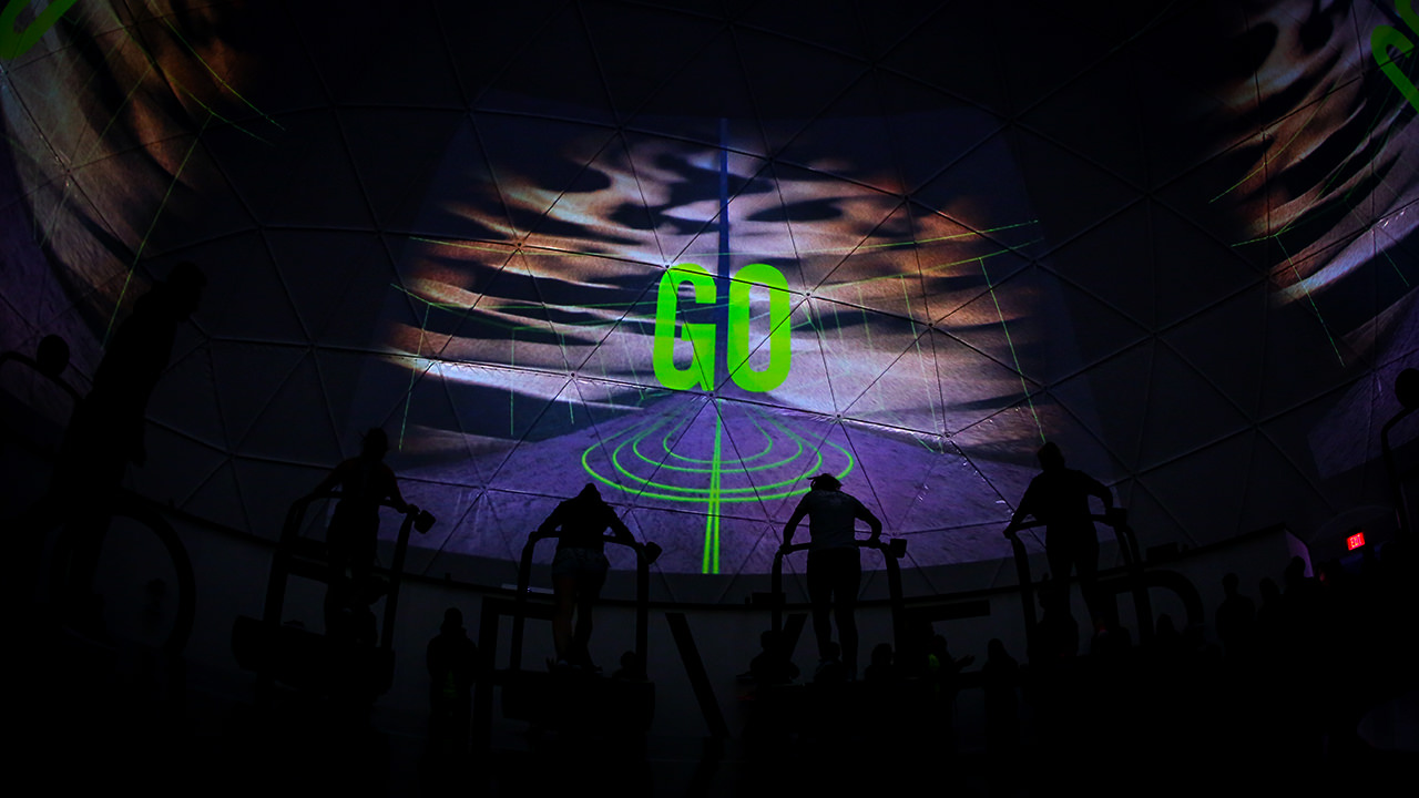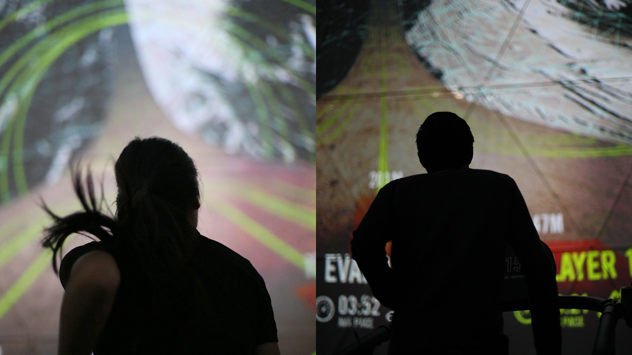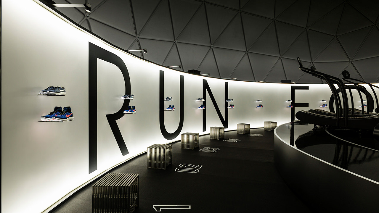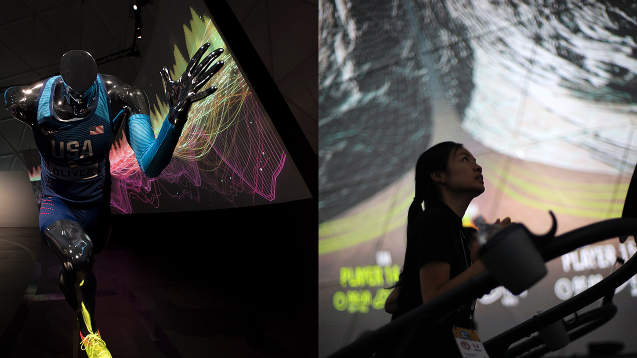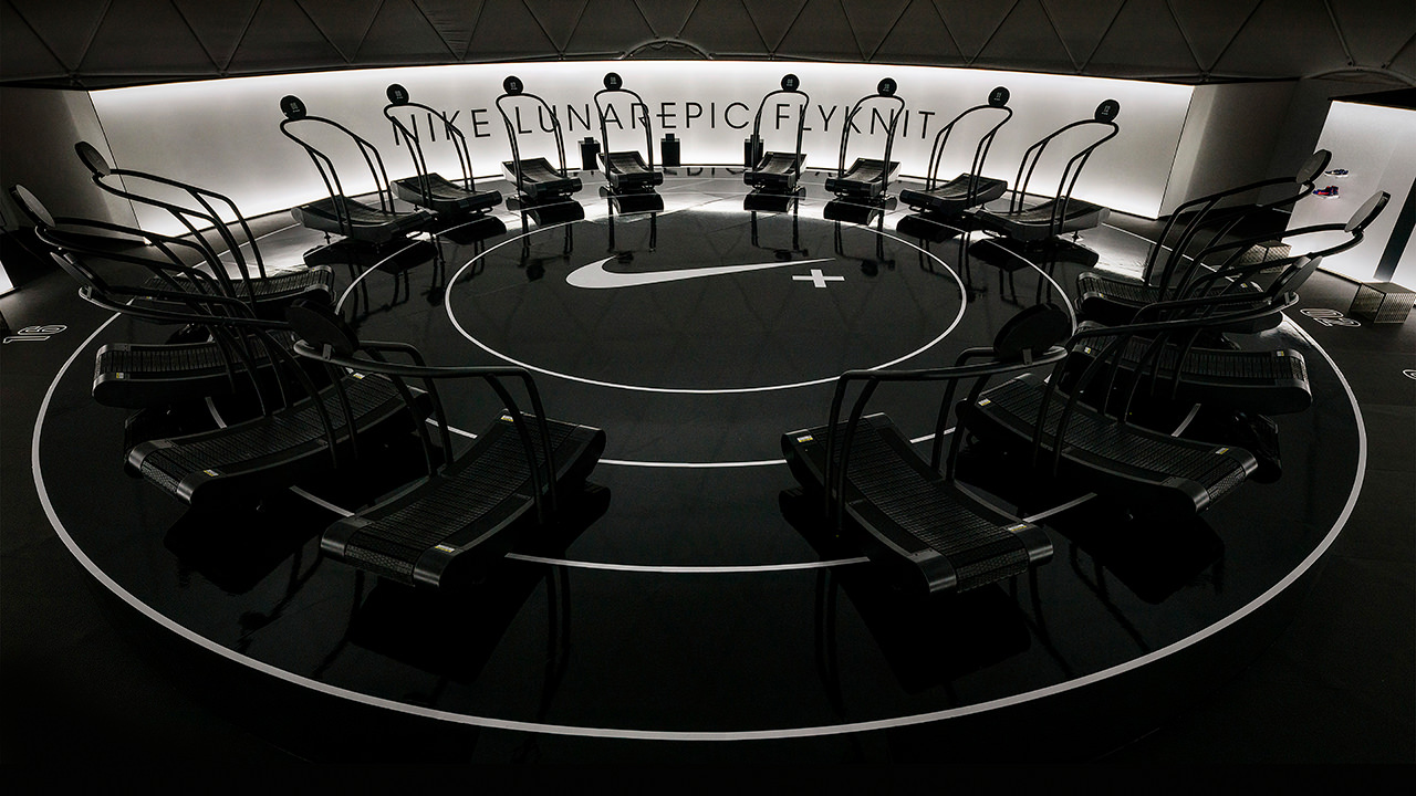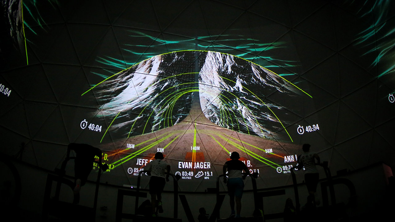 使用Nike Run Club和Lunar鞋類品牌作為展覽基地,16名跑步者一次在試驗(yàn)圓頂?shù)?60o虛擬環(huán)境中參加跑步機(jī)比賽。