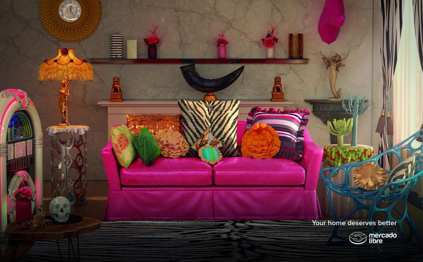 美好的家居裝修會讓人心生向往,糟糕的裝修也會讓人感到崩潰,內(nèi)心各種瘋狂吐槽。拉美的家具電商公司Mercado Libre就打破定勢思維,以反面教材為出發(fā)點(diǎn),創(chuàng)作了一組看上去不太舒服的平面廣告,告訴大家:“You home deserves better.”你值得擁有更好的家。