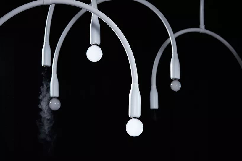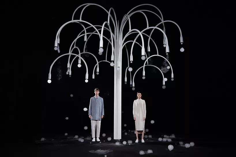 這個(gè)神奇的裝置藝術(shù)作品通過(guò)樹上一顆顆會(huì)往下掉的花苞來(lái)表現(xiàn)繁花飄落。它屬于一種多感官互動(dòng)裝置,由廢舊金屬制成,每 5 秒會(huì)從30 條枝干中飄落泡泡。掉落的泡泡會(huì)在遇到衣服時(shí),輕輕彈開,但在接觸到人的皮膚之時(shí),化成霧氣。