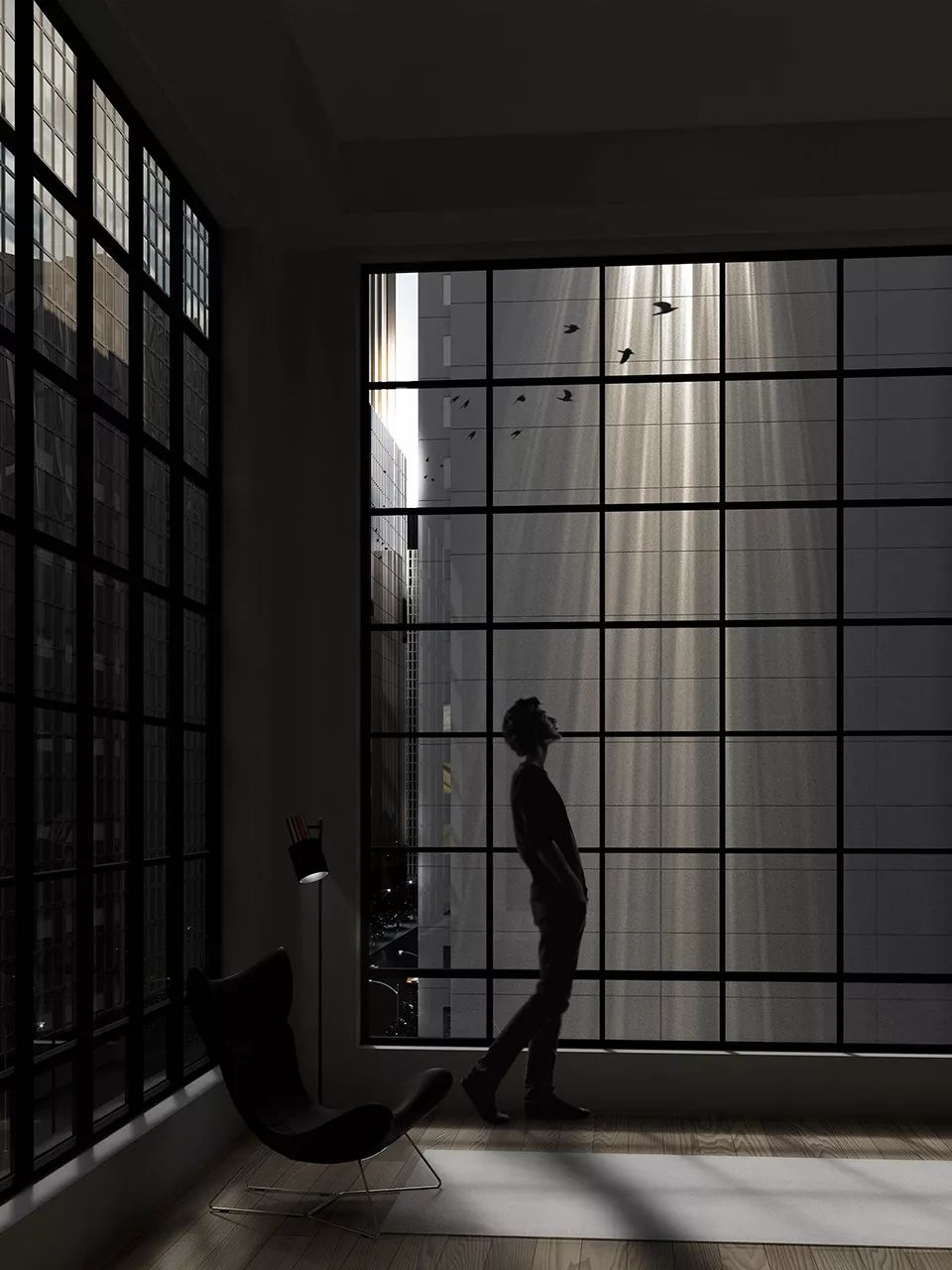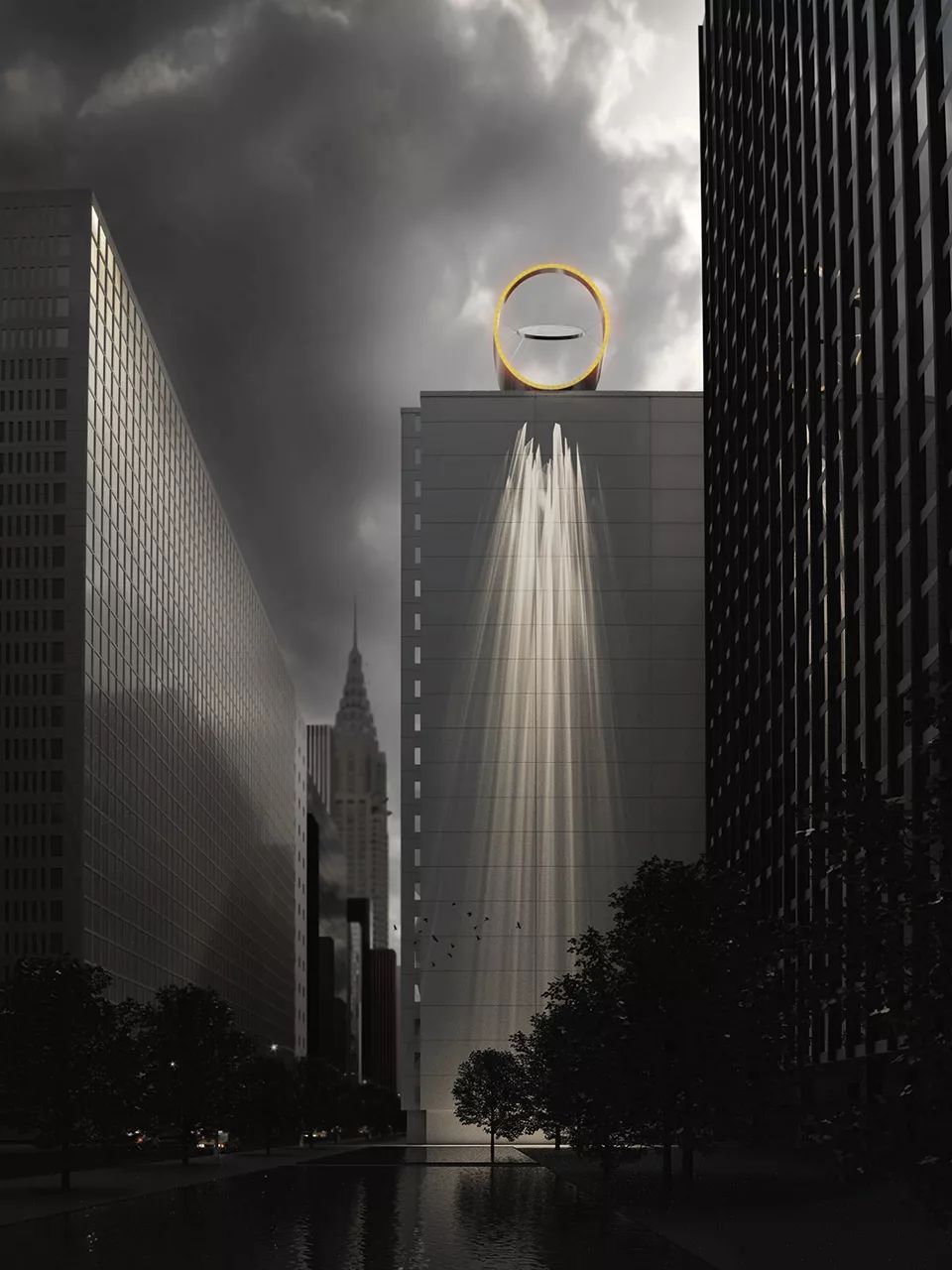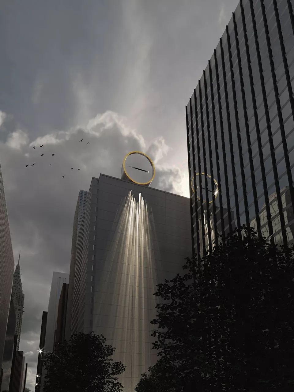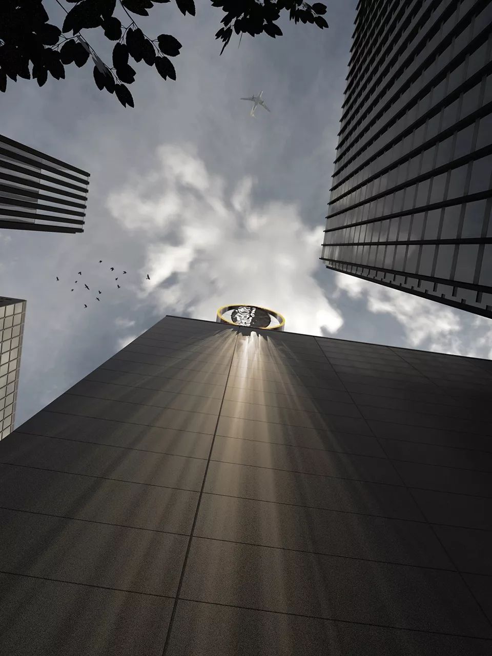 Helio Ray是一個(gè)以工程學(xué)為基礎(chǔ)的概念性項(xiàng)目,它被安裝在一棟高樓的頂部,并通過(guò)日光反射來(lái)獲取能源。機(jī)械化的鏡面能夠追蹤太陽(yáng)的運(yùn)行,并將陽(yáng)光匯聚為一道集中的光束。這道光束會(huì)被另一個(gè)特制的鏡面沿著建筑的立面向下反射,帶來(lái)令人驚嘆的效果。第二個(gè)反射鏡的表面呈波紋狀。整個(gè)裝置猶如對(duì)太陽(yáng)本身的延伸。反射器外部是一個(gè)發(fā)光的圓形結(jié)構(gòu),在夜間也十分引人注目。