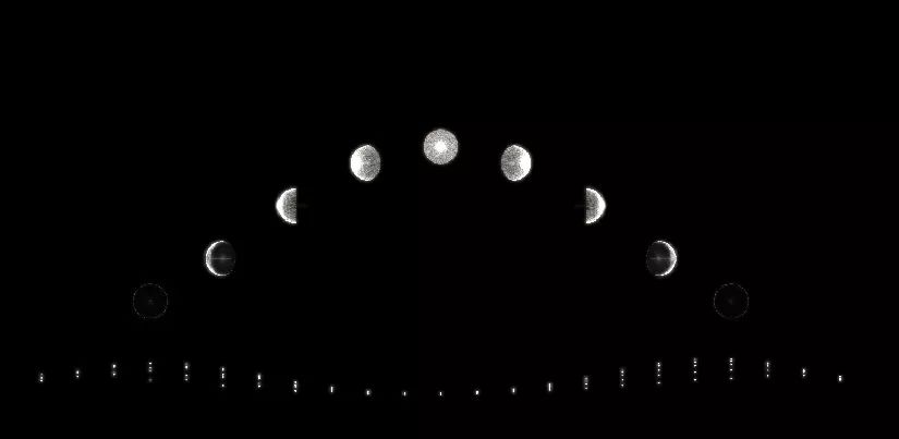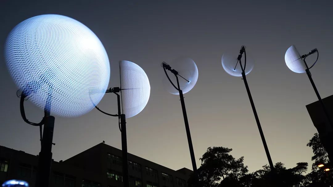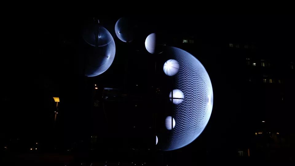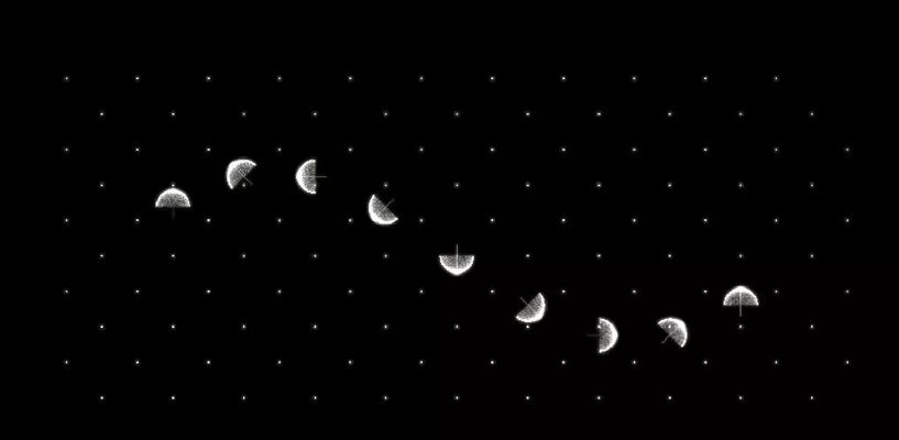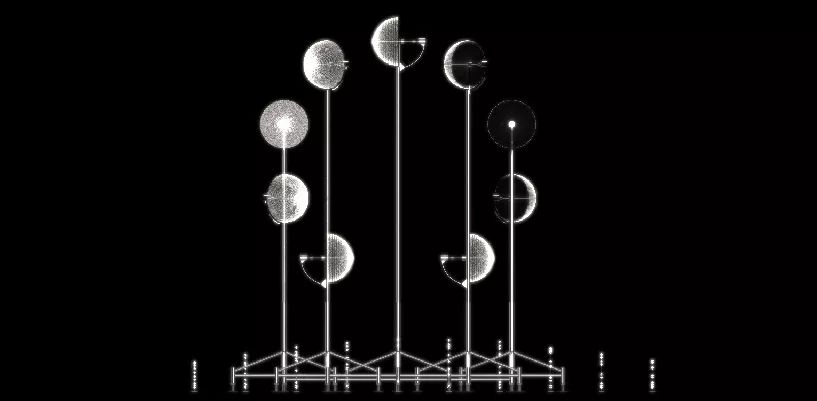 「觀月計(jì)畫 #define Moon _」是由何理互動(dòng)設(shè)計(jì)打造的9座旋轉(zhuǎn)動(dòng)力光線裝置,以呈現(xiàn)月形的各個(gè)姿態(tài)。觀者可以透過(guò)不同的觀看角度,探索作品的各種面向,進(jìn)而回歸到科學(xué)精神。