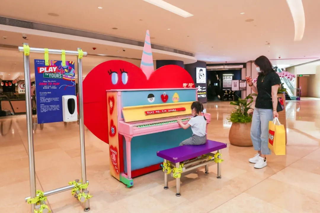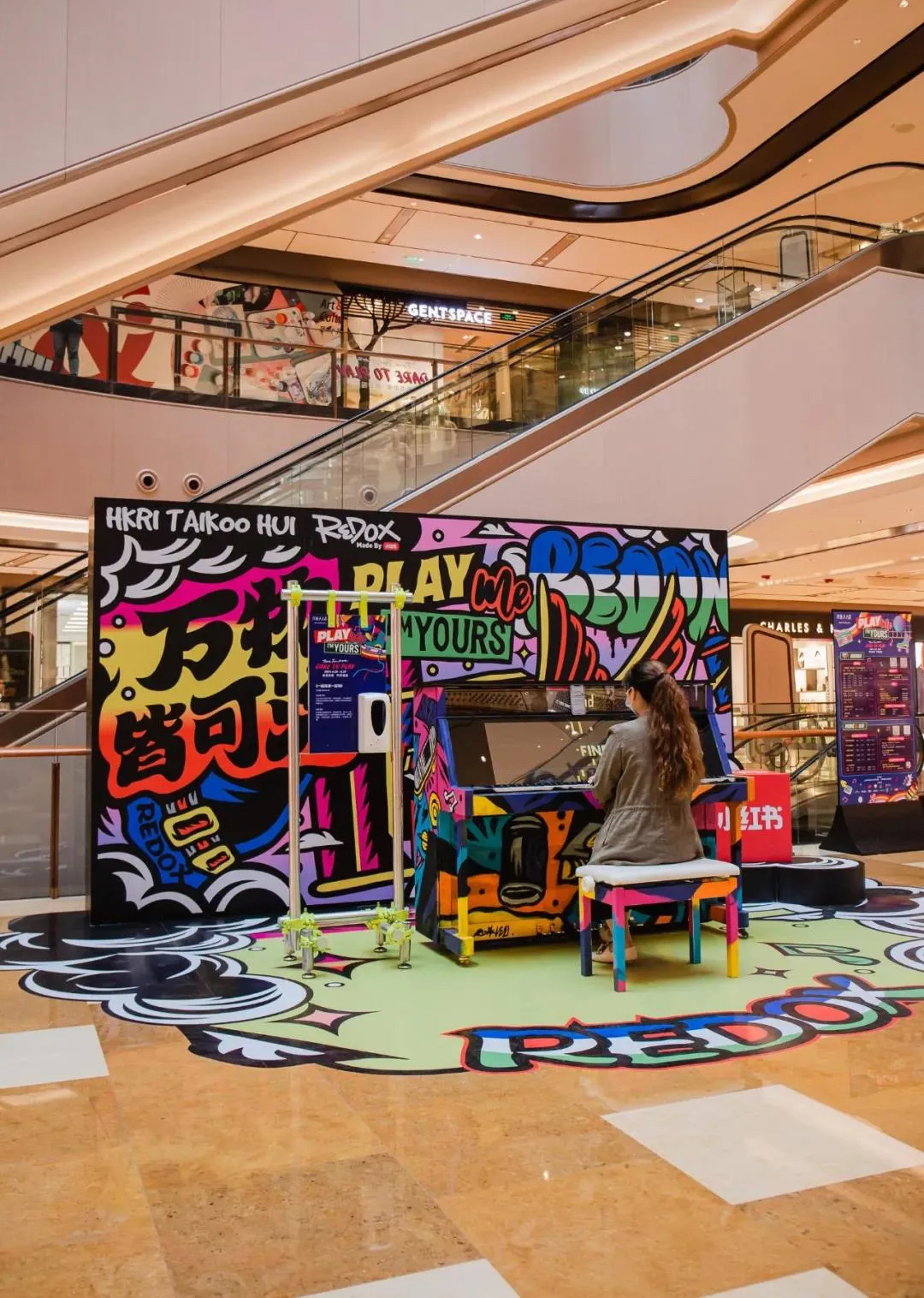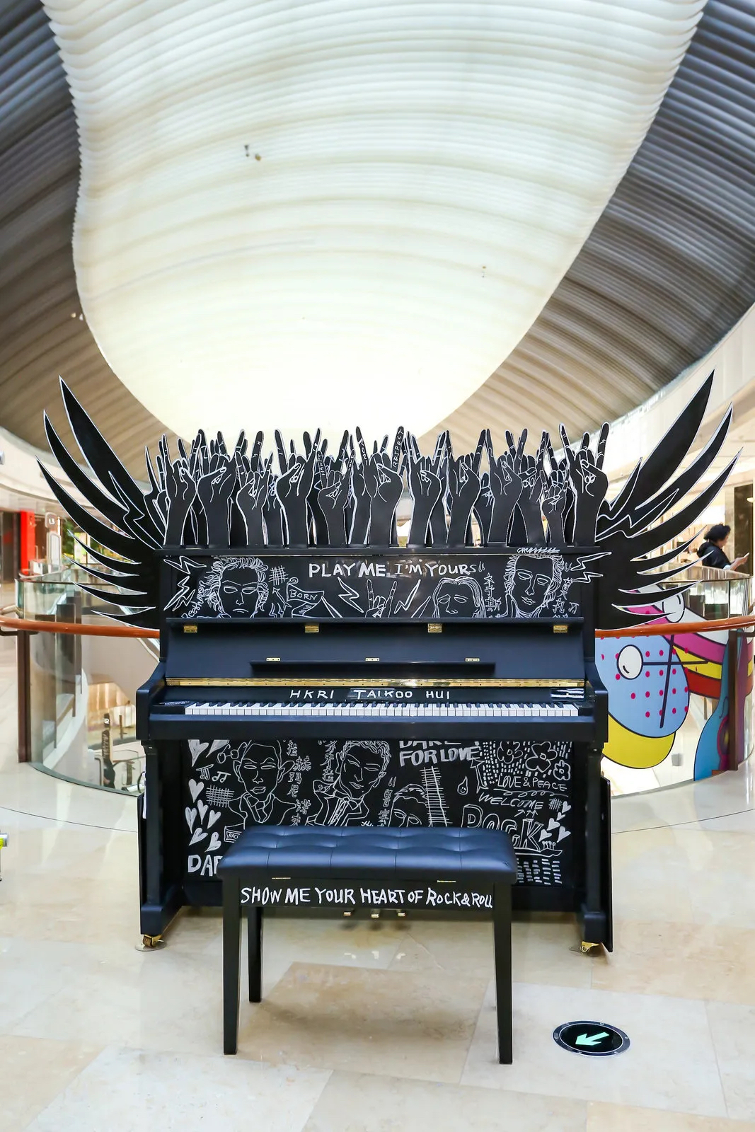 一架復(fù)古藝術(shù)涂鴉鋼琴擺放在興業(yè)太古匯北廣場,樓梯口也變成了一個時光隧道的模樣。穿越這個隧道,斑長仿佛來到了一個80年代音樂現(xiàn)場,復(fù)古的logo、動感的音樂,一場復(fù)古派對即將開啟!18架復(fù)古涂鴉鋼琴擺放在商場各個角落,每個經(jīng)過這里的人都可以彈奏。被音樂和鋼琴包裹的興業(yè)太古匯,不但吃喝玩樂一整天,還能享受一場鋼琴音樂帶來的瞬間治愈。作為2021年“Play Me, I’m Yours”公益鋼琴活動的「鋼琴慈善大使」,聽到李泉現(xiàn)場彈奏音樂,真的超級治愈!