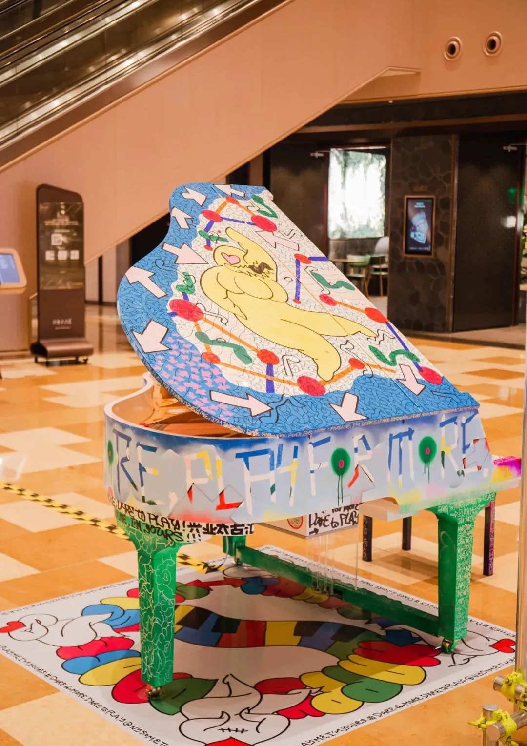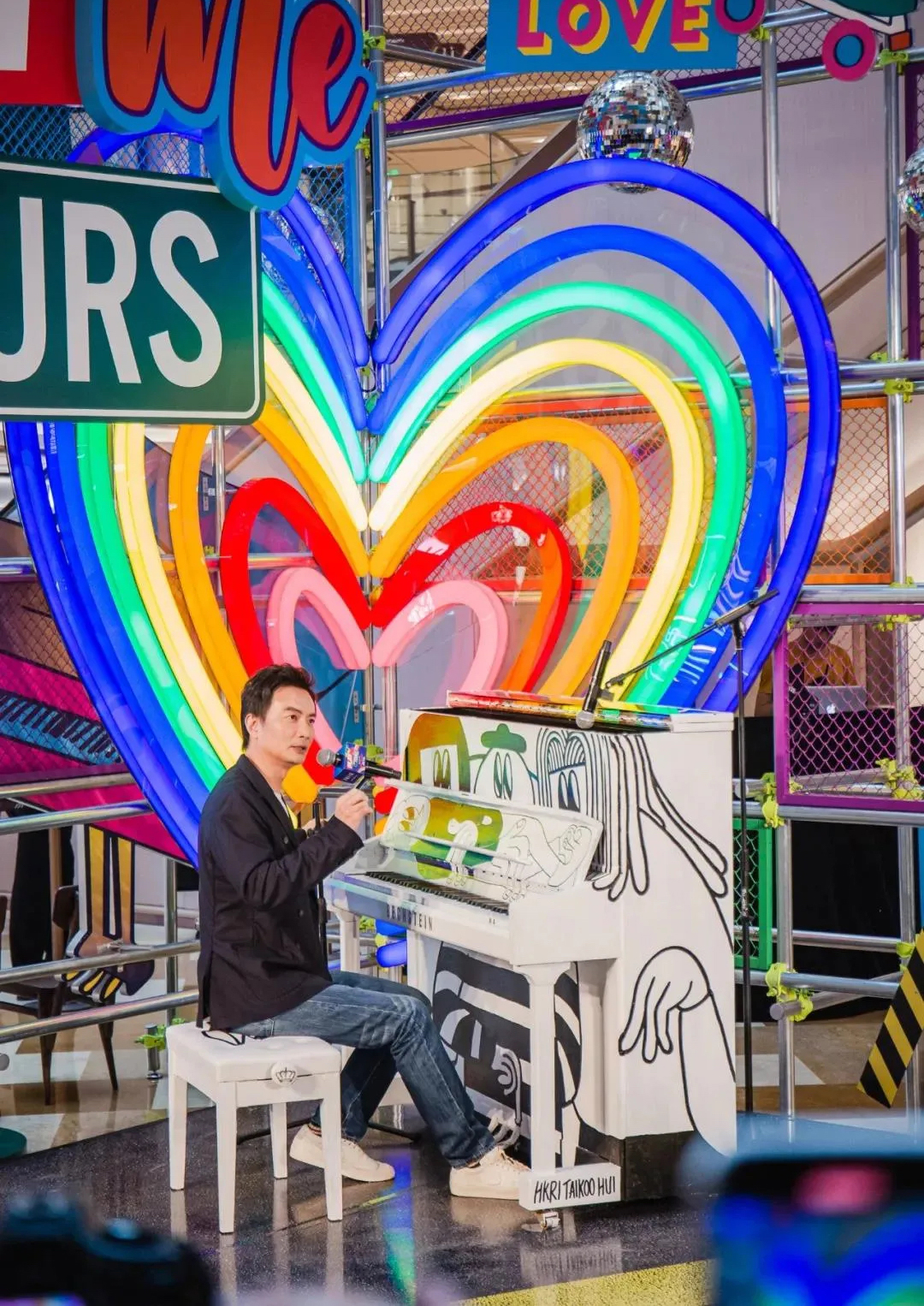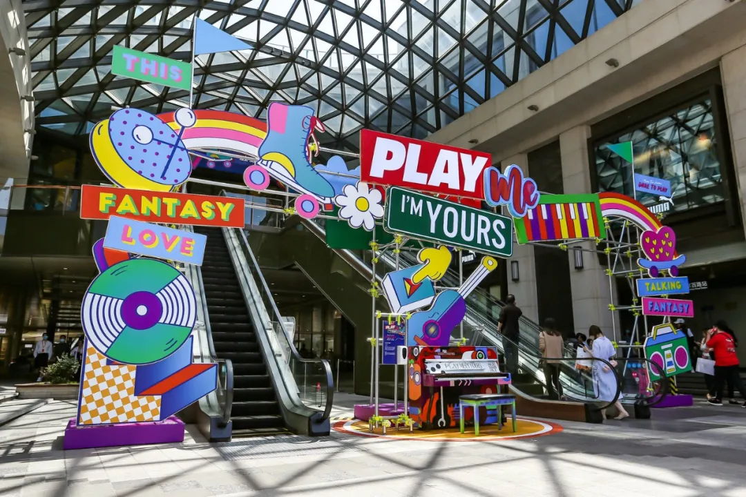 一架復(fù)古藝術(shù)涂鴉鋼琴擺放在興業(yè)太古匯北廣場,樓梯口也變成了一個時光隧道的模樣。穿越這個隧道,斑長仿佛來到了一個80年代音樂現(xiàn)場,復(fù)古的logo、動感的音樂,一場復(fù)古派對即將開啟!18架復(fù)古涂鴉鋼琴擺放在商場各個角落,每個經(jīng)過這里的人都可以彈奏。被音樂和鋼琴包裹的興業(yè)太古匯,不但吃喝玩樂一整天,還能享受一場鋼琴音樂帶來的瞬間治愈。作為2021年“Play Me, I’m Yours”公益鋼琴活動的「鋼琴慈善大使」,聽到李泉現(xiàn)場彈奏音樂,真的超級治愈!