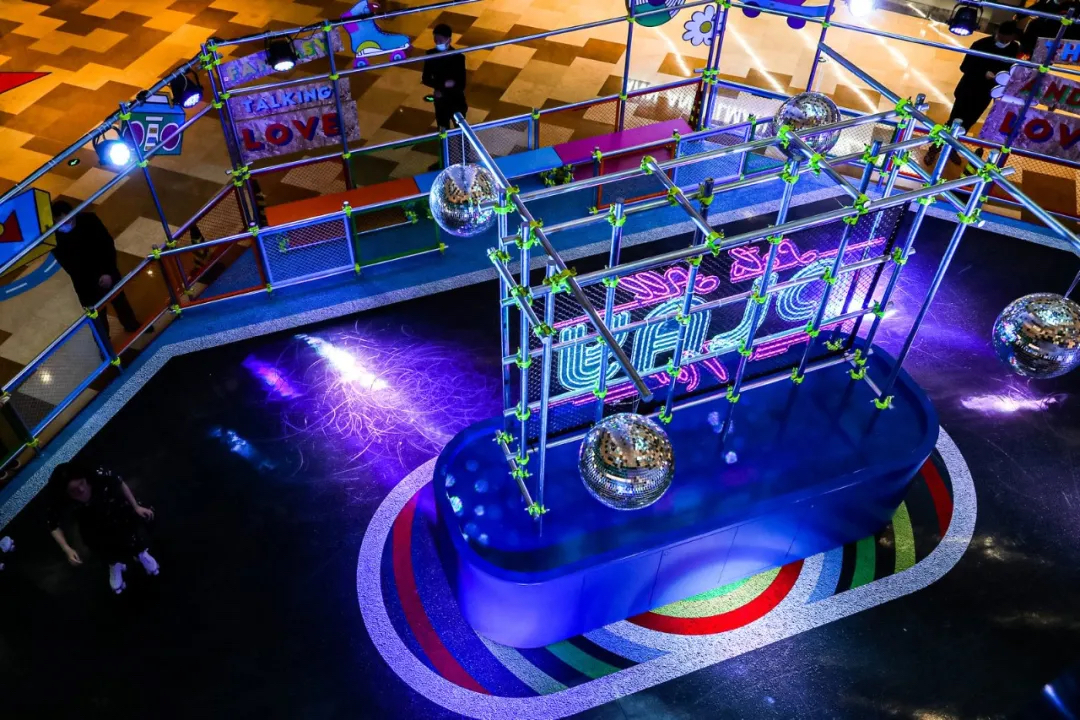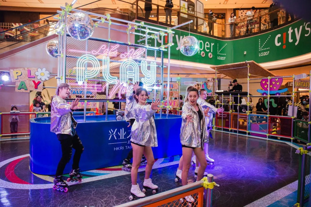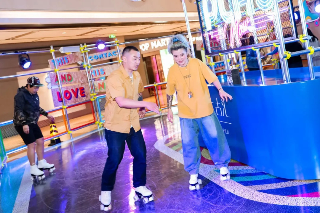 今年的興業(yè)太古匯整個變身80S復(fù)古輪滑場,主題新增了復(fù)古輪滑和80年代復(fù)古街頭元素等。從輪滑場、商場bgm到各種陳列裝置……一場融合了輪滑、鋼琴、音樂等的80年代復(fù)古派對華麗開啟!離開地面的速度感伴隨著復(fù)古音樂,整個人的心情up up!輪滑現(xiàn)場,竟然還有酷炫動感DJ,在音樂變換中大家穿越到80S,“盡琴”搖滾!迪斯科球,老式舞廳霓虹燈,不間斷的復(fù)古音樂,帶你一秒回到80年代的夜生活。