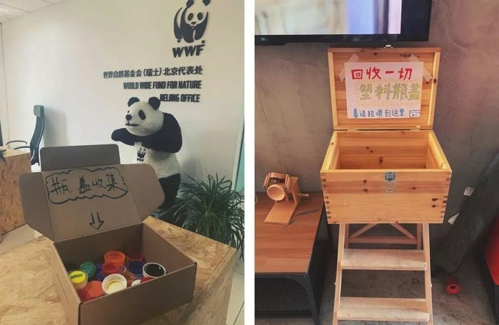 在這次活動中,LxU用網(wǎng)絡收集的近 15000 個瓶蓋制成的海報,完整版的塑料垃圾藝術品還入駐了 WWF 的活動發(fā)布會以及線下藝術展的陳列,都獲得了不錯的反響。