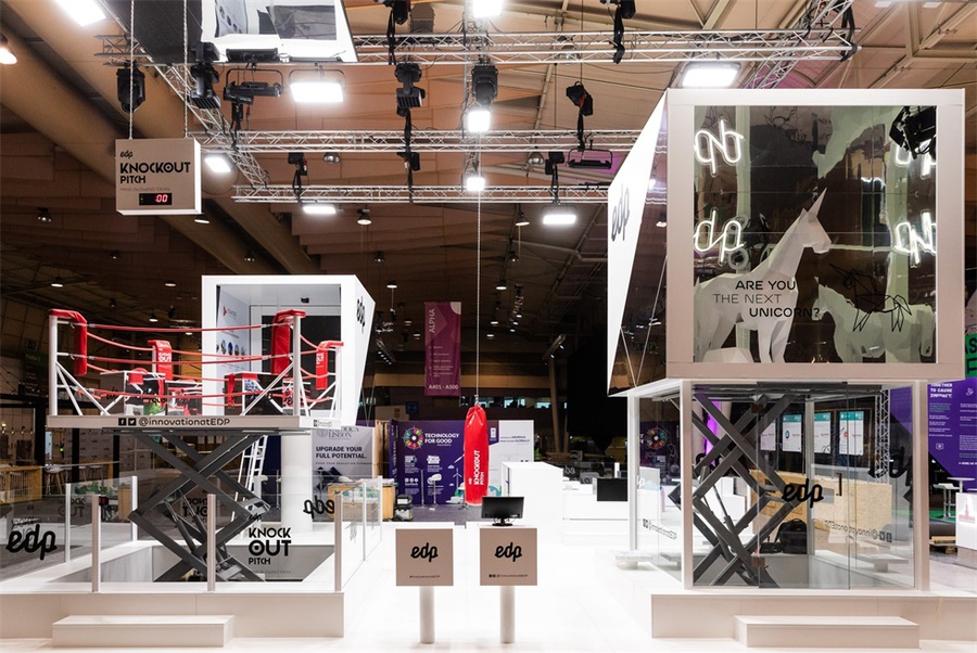為了尋找或吸引創(chuàng)業(yè)公司進(jìn)入EDP,現(xiàn)場搭建了一個拳擊場EDP擂臺,為創(chuàng)業(yè)公司提供一個擂臺,讓他們展示自己的想法。成為下一個獨角獸則制作了一個能升降的獨角獸,通過參觀者的即時分享照片在社交媒體上引起轟動。為了展示EDP的創(chuàng)新項目,策劃了EDP互動創(chuàng)新之旅,這是一個與網(wǎng)絡(luò)峰會的喧鬧與嘈雜隔絕的沉浸式立方體,通過手勢與視頻內(nèi)容進(jìn)行互動,通過體驗EDP創(chuàng)新項目為參觀者提供了一段互動體驗之旅。在EDP的休息區(qū),你可以在推介會結(jié)束后與初創(chuàng)公司進(jìn)行深度溝通,為手機(jī)或其他設(shè)備充電,并放松身心。