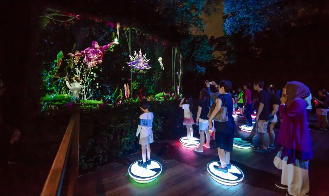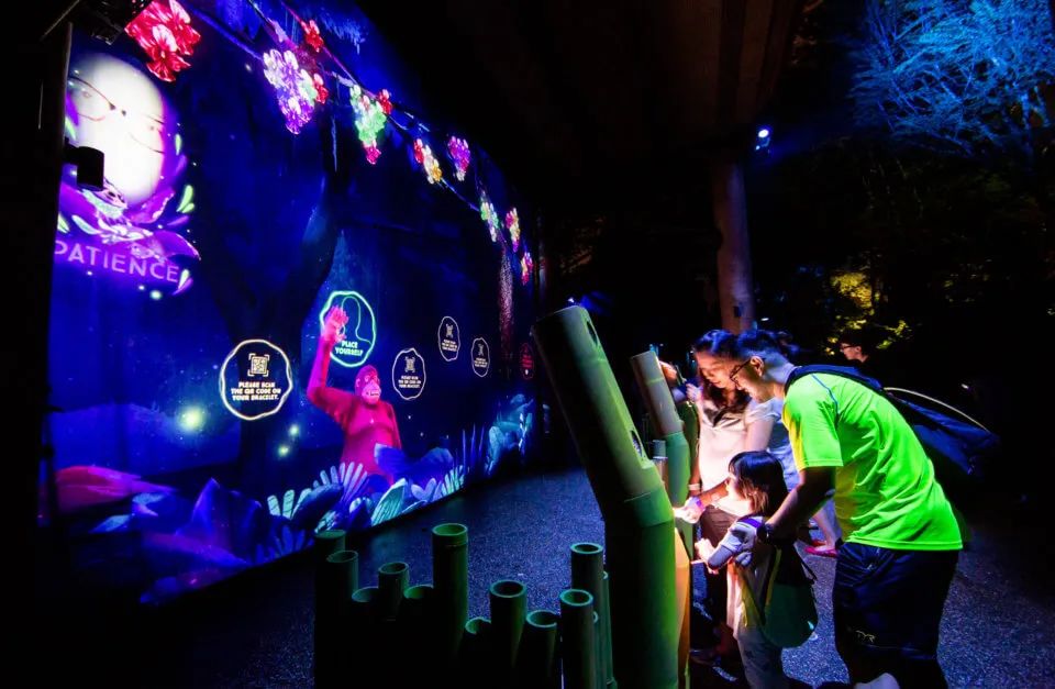 新加坡動物園周年慶活動策劃了亞洲第一個沉浸式多媒體夜游體驗 空長嘆 展會展覽, 燈光音響5年前1401.10W00 RAINFOREST LUMINA是為紀念新加坡動物園成立45周年,而推出的一個以野生動物園為背景、利用多媒體手段,結合燈光、聲效,全方位地創(chuàng)造一種沉浸式投影體驗,也是全亞洲第一個多媒體夜行體驗。 此項目由10個區(qū)域組成,秉承每個人都可以在雨林里擁有屬于自己的專屬角色的理念,可以和動物一起玩耍,一起傾聽動物的聲音,一起漫步在燈光打造的雨林中享受炫目的視覺色彩沖擊,讓游客感受熱帶雨林與大自然的生命力。 幻光雨林全程約一公里,規(guī)劃了樹梢步道、幻光之路、光之木屋、微光島嶼等13個主題。將故事融入景觀之中,引領游客與動物使者邂逅,并在這組怪趣英雄團隊的帶領下開啟一場無與倫比的神奇冒險。 游客們可以通過唱的方式“呼喚”巖石下的燈光涌現(xiàn);可以通過蹦跳的方式“召喚”出不同的動物。所有的這些元素都有助于提升游客的整體體驗,增強在雨林之中的真實感和參與感。 每位游客帶上RFID腕帶,不同動物有不同的個性和責任,每一種動物由不同顏色的腕帶表示,當游客戴上腕帶進入活動現(xiàn)場后,腕帶將成為參與某些活動的觸發(fā)器。不同的腕帶在活動中將會觸發(fā)出不同的動物形象。 動物園中的動物被賦予不同涵義的名字,例如猩猩是瑪雅,代表創(chuàng)造力;蝙蝠是龐丘,代表慷慨;貓科動物名為泰瑞,代表勇氣。游人也可以通過園區(qū)中的互動游戲,測試自己的特質最接近雨林中的哪種動物。 互動游戲區(qū)中共有像動物們一樣的玩耍吧以及名人堂兩區(qū)。像動物們一樣的玩耍吧,在互動區(qū)放置許多光圈按鈕,只要在上面跳動,熒幕上的動物就會隨著跳動而跳起來,不管大人小孩都玩得相當高興。名人堂,則是透過互動的方式,認識所有的動物使者。 本文來源古奇文旅,由空長嘆發(fā)布,觀點不代表會展活動策劃CCASY.COM的立場,轉載請聯(lián)系原作者。
