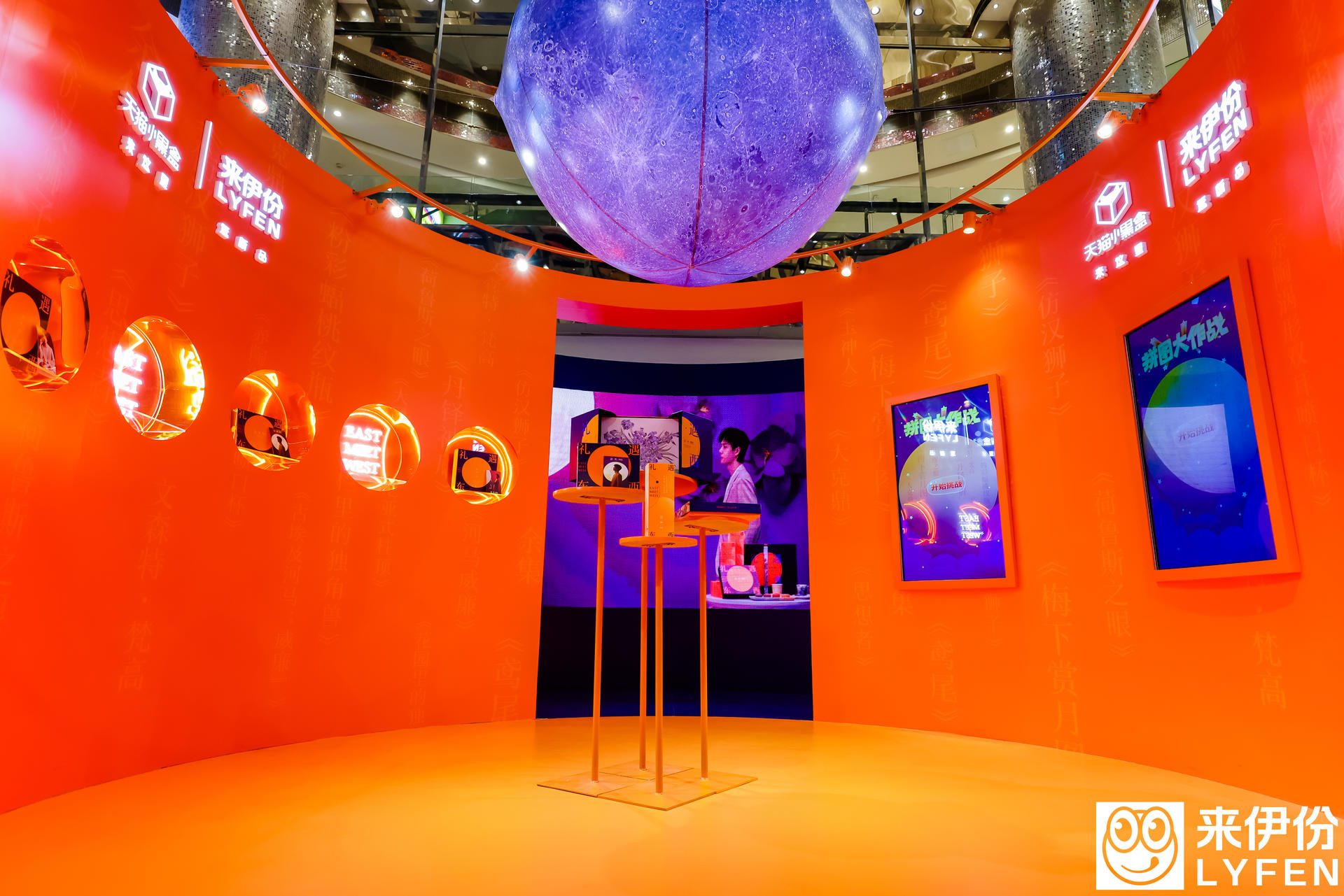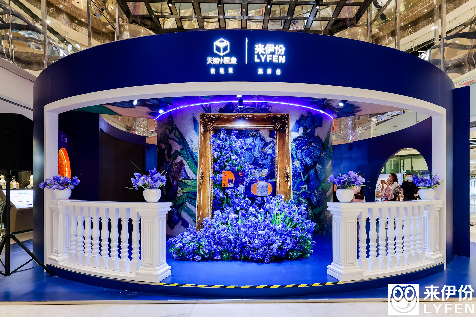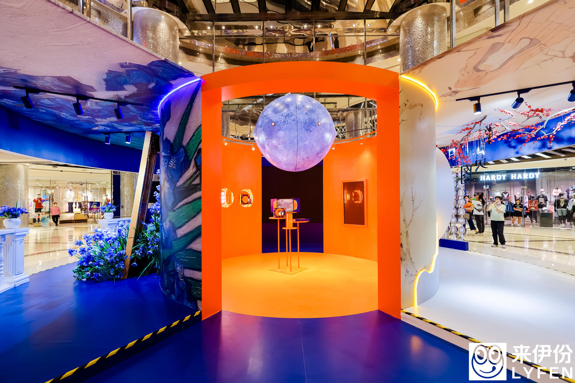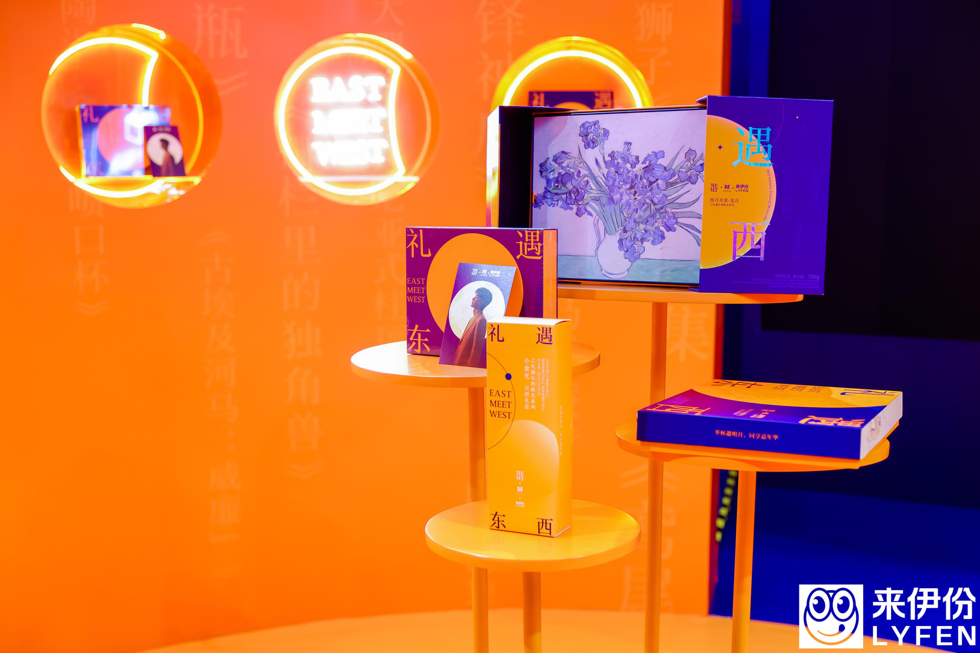 本次的來(lái)伊份“禮遇東西”中秋限時(shí)快閃店坐落于上海靜安大悅城南座,以深邃的星河藍(lán)筑起一座小型博物館,集鮮潮美食、博物館藏與一體,打造出沉浸感“視、聽(tīng)、玩、樂(lè)”多維度感官盛宴,在工作日便吸引不少顧客前來(lái)參觀打卡。