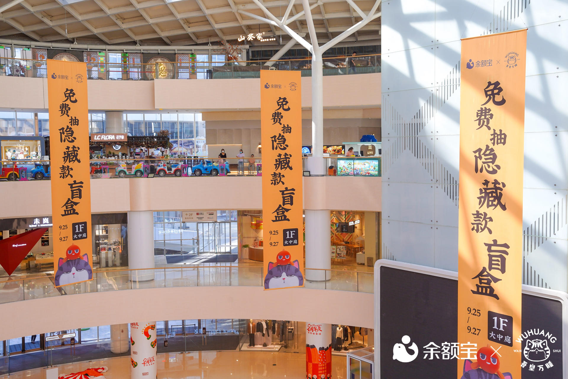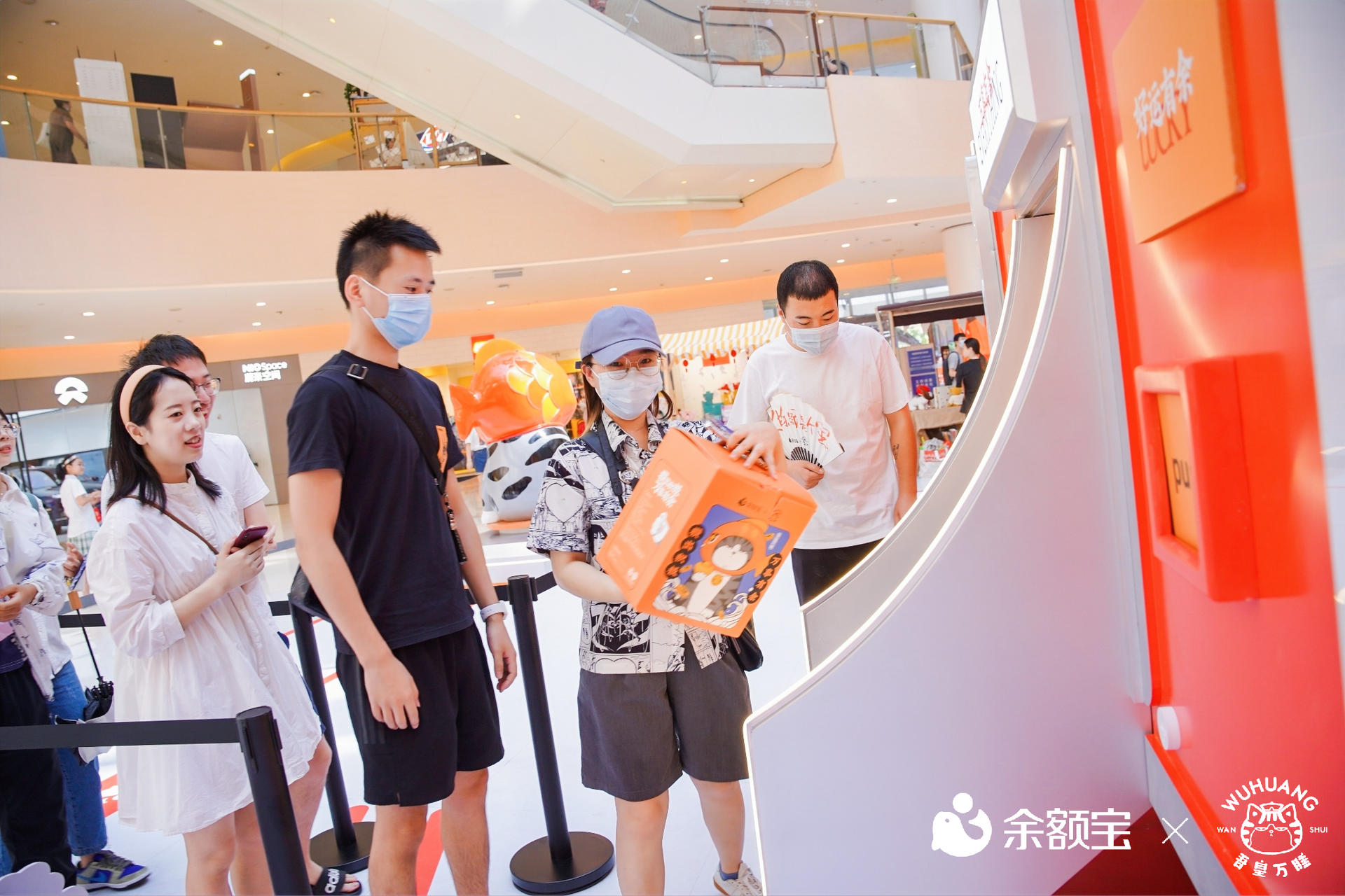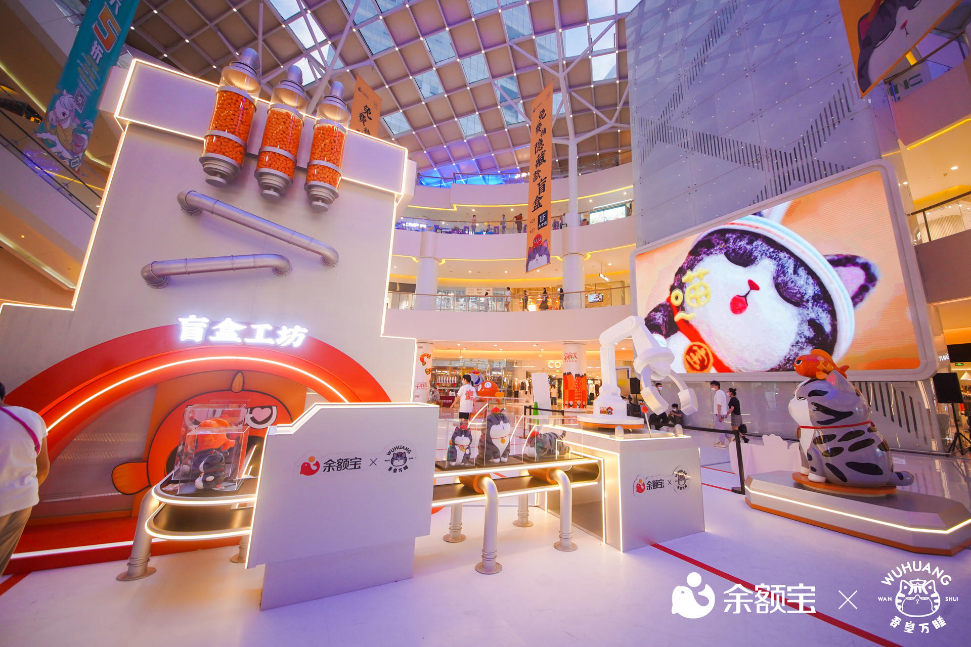 余額寶攜手網(wǎng)紅IP吾皇萬睡盲盒工坊空降杭州城,貓和魚的首次合體,吾皇和余有有的友情故事,一整面免費的聯(lián)名盲盒墻,還有超大隱藏款,引得眾多市民和網(wǎng)紅小哥哥小姐姐前來打卡。