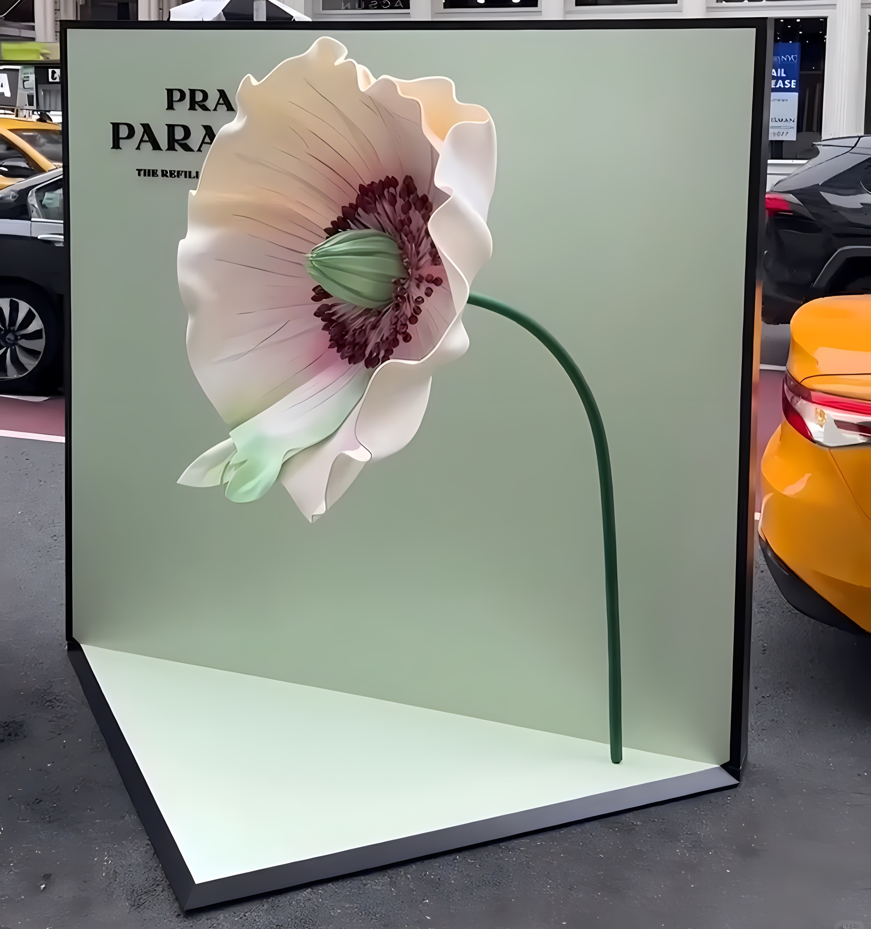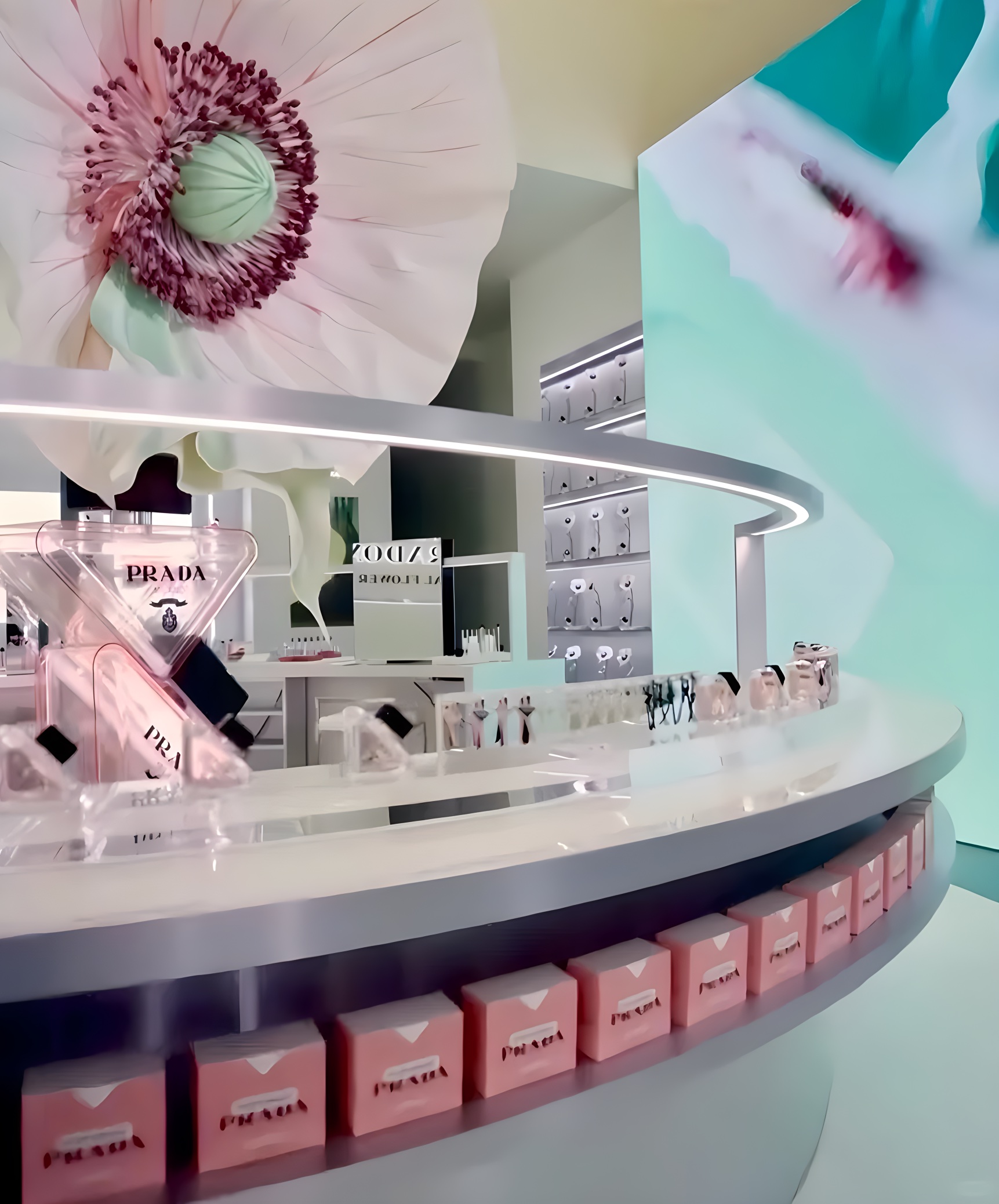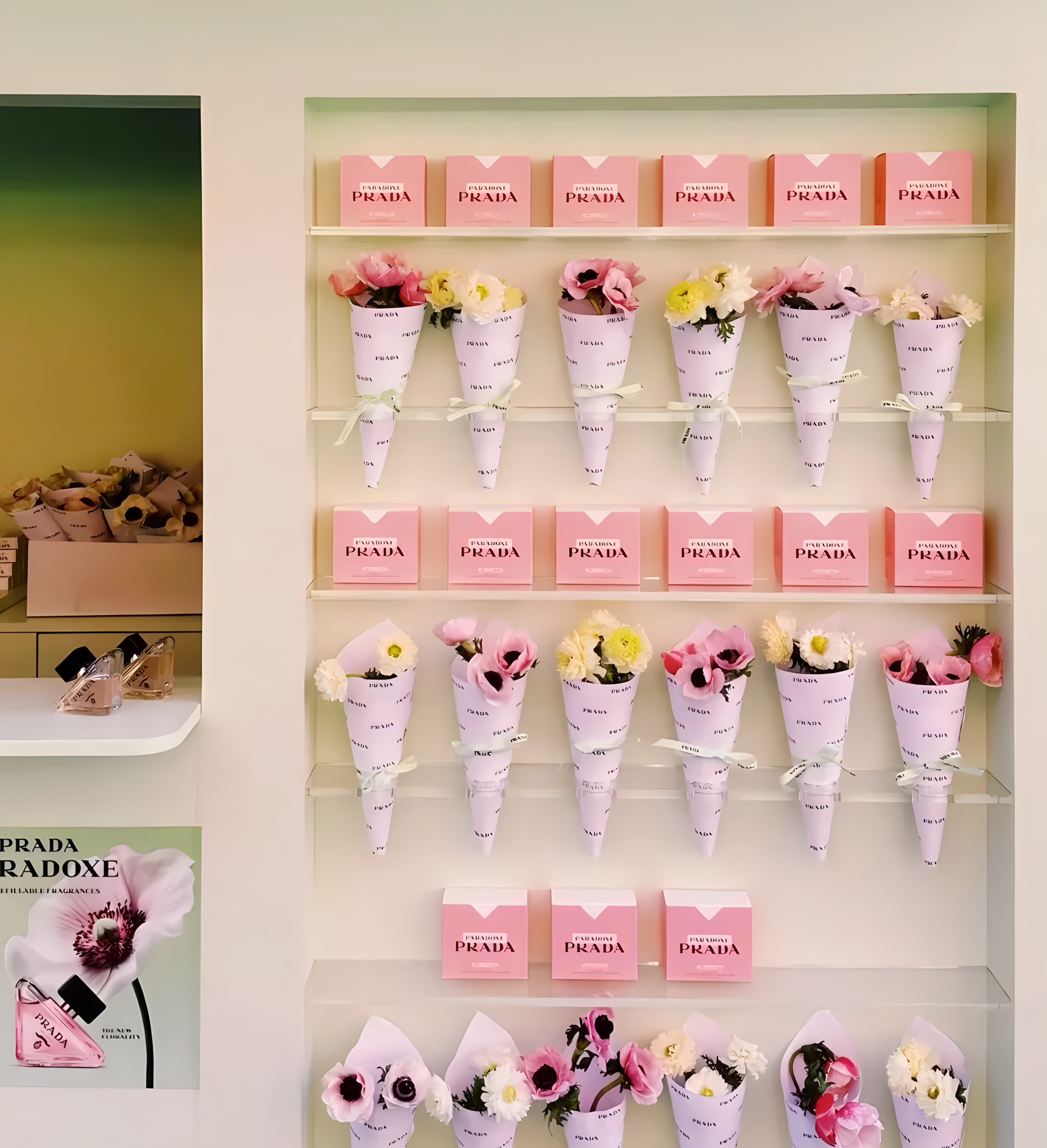 為了推廣 Paradoxe Virtual Flower 香水,普拉達精心設計了備受矚目的時刻,注重細節(jié)與設計,沉浸式的氣味體驗室,充滿香水氣泡,精心策劃的花市。