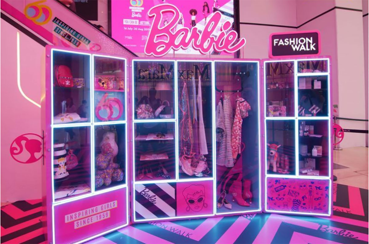 今年,芭比進(jìn)入了60歲生日了,繼先前蛋糕店推出芭比下午茶之后,銅鑼灣的Fashion Walk推出推出了芭比展覽,通??梢孕蕾p到芭比巨型衣柜,購(gòu)物滿指定金額還可以換領(lǐng)Barbie少女甜品。