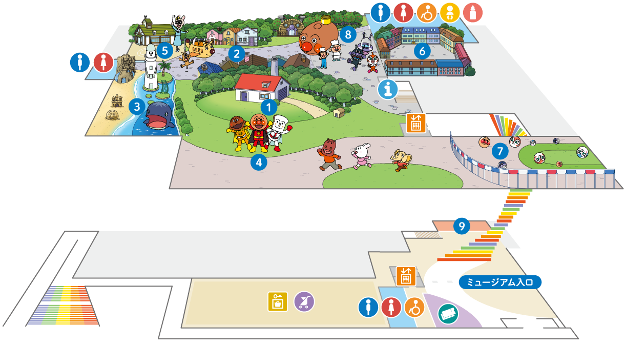 新的橫濱面包店超人博物館共有4層。一樓是商店和美食餐廳,二樓是博物館入口和售票處,三樓是博物館,新面包超人博物館靠近橫濱站,來自世界各地的游客到達(dá)更方便!此外,車站的人行道非常寬敞,可以輕松推動?jì)雰很?,孩子們可以更安全地步行和跳躍。
