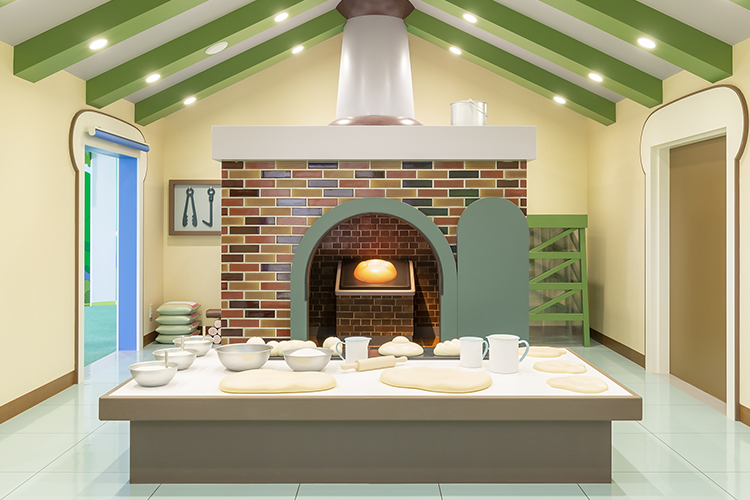 走進(jìn)超人博物館,就像面包超人的卡通世界一樣,充滿了驚喜!在二樓的售票處買票后,您可以沿彩虹梯上三樓開始探險(xiǎn)!走上樓梯到三樓,你會看到面包超人動畫中最熟悉的場景,面包工廠和大草坪,甚至連面包工廠里都恢復(fù)了動畫場景,包括面包材料器具和大烤爐,孩子們可以像果醬爺爺和奶油妹妹一樣學(xué)習(xí)制作面包!