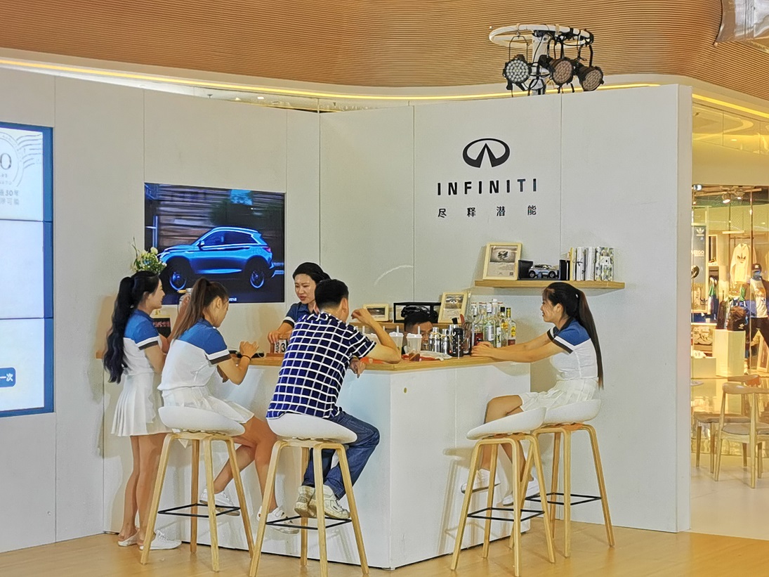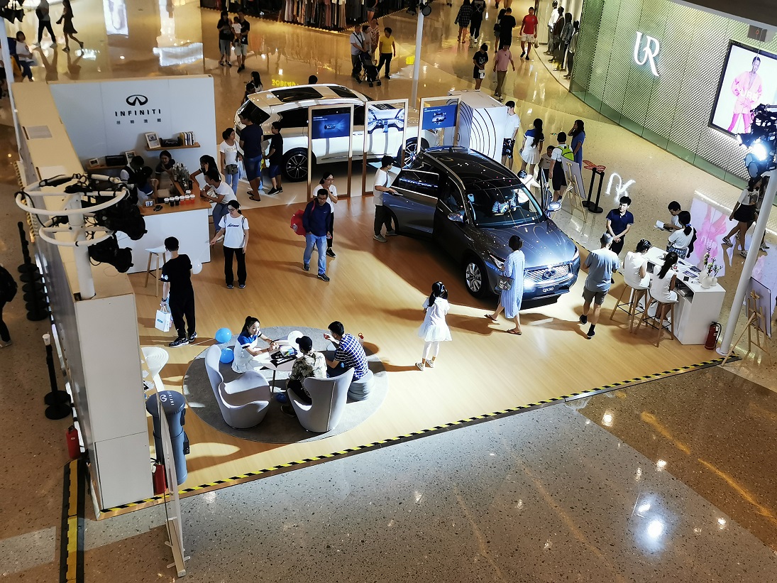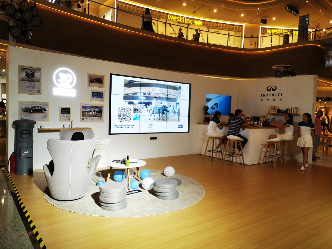 英菲尼迪品牌誕生三十周年之際,東風(fēng)英菲尼迪在營銷方面持續(xù)發(fā)力,圍繞盡釋潛能的品牌口號,以及活出無限可能的營銷主線,打造一系列營銷事件。此次在天津愛琴海購物中心就舉辦了這么一場英菲尼迪品牌誕生三十周年的快閃店活動(dòng),活動(dòng)現(xiàn)場整個(gè)空間很規(guī)則,合理的使用商場中廳。