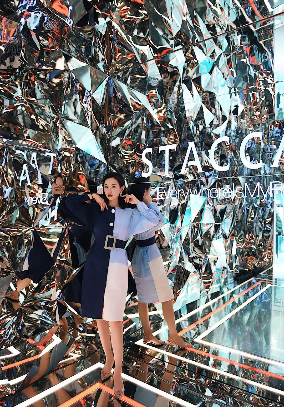 STACCATO打造的POP-UP快閃店——現(xiàn)代夢想城空降北京東方廣場,根據(jù)交錯夢境,建立夢想之城。波光銀與海藍交錯入迷秘人魚色,打造奇趣夢境的場景,輔以鏡像、幻彩、水晶、通明膠片等超實際夢境元素,光影與通明交匯美輪美奐,帶你體會一場推翻感官的白日幻夢之履。