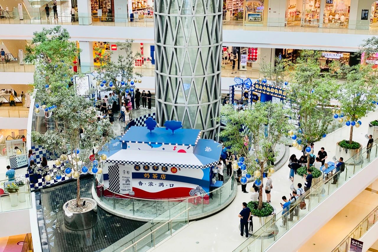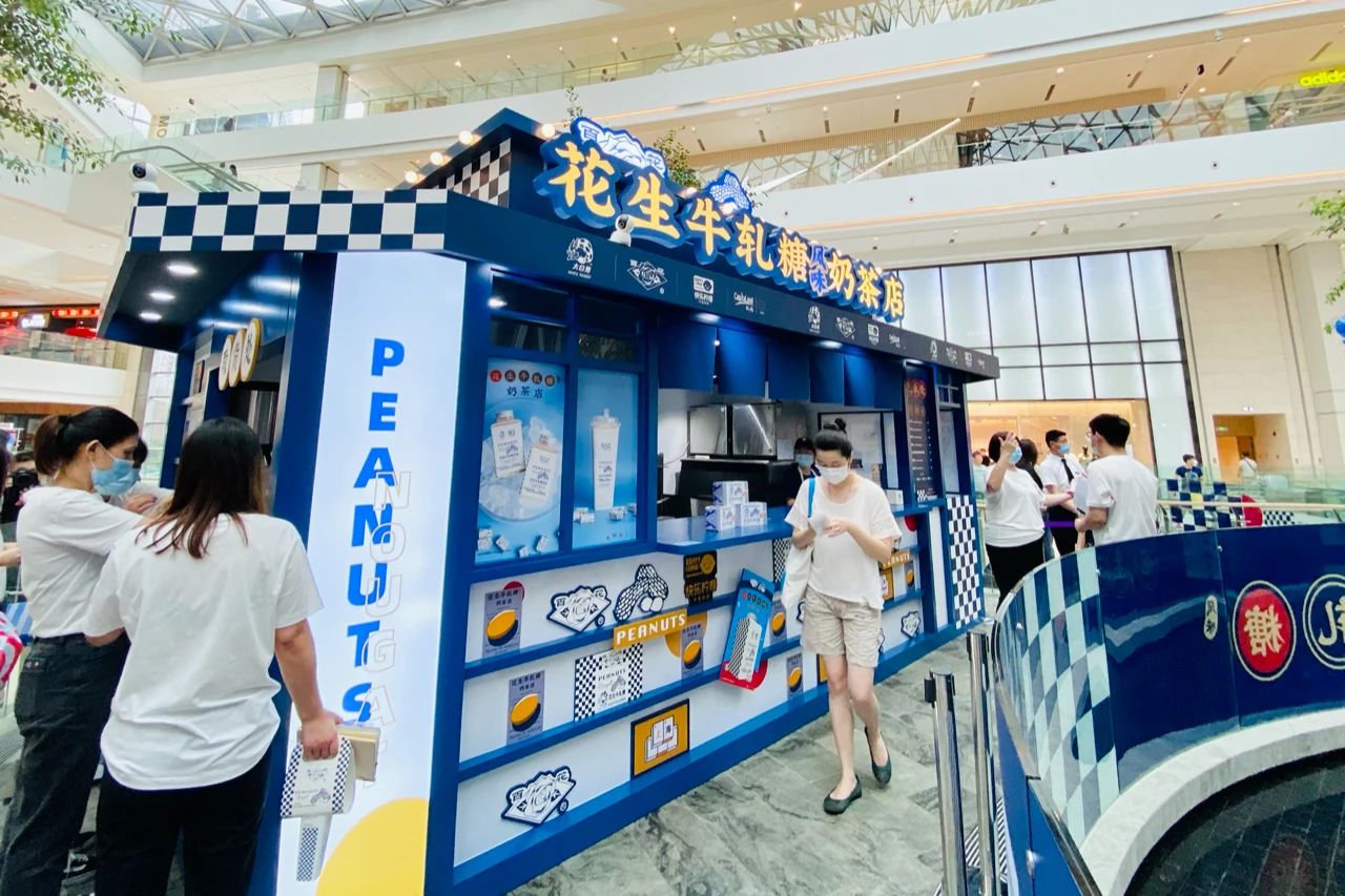 LuOne再次迎來與大白兔品牌的默契合作,此次是旗下另一經(jīng)典品牌百花牌花生牛軋?zhí)?,?層中庭開出品牌衍生品快閃店,并聯(lián)合快樂檸檬品牌推出花生牛軋?zhí)秋L(fēng)味奶茶店,同時與蔡嘉法式甜品開啟跨界合作推出定制產(chǎn)品。煥發(fā)老字號品牌活力的同時,也為商場暑期檔帶來更多豐富體驗(yàn)。