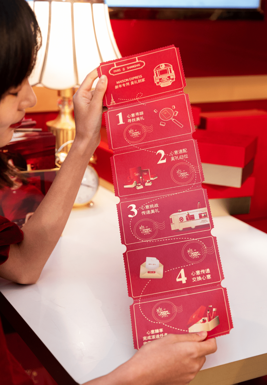 此次巴黎歐萊雅新年專列以寓意好運(yùn)的紅金配色設(shè)計(jì),吸睛造型與豪華美禮盡顯法式優(yōu)雅美感,加持新年好運(yùn),吸引眾多消費(fèi)者紛紛前來(lái)打卡體驗(yàn)。步入新年專列,換票登車,前往【心意認(rèn)領(lǐng)】區(qū),領(lǐng)取新春裝備化身巴黎歐萊雅專屬新年列車長(zhǎng),即刻檢票上車,讓新年“紅”運(yùn)上身;隨檢票員進(jìn)入復(fù)古拍照區(qū),體會(huì)法式優(yōu)雅與浪漫,并于四處散落美禮的車廂中,探秘巴黎歐萊雅牛年新春限量臻品,【心意尋蹤】刻不容緩;將找回的美禮速速交還給明星心意傳遞官,讓彼此的【心意速配】;帶上心愿手環(huán),開(kāi)啟【心意挑戰(zhàn)】,通關(guān)美禮派送挑戰(zhàn),將至臻美禮與暖心祝福送至各地;在【心意傳遞】區(qū)交換心意,傳遞真摯祝福,讓蘊(yùn)含真誠(chéng)與祝福的心愿,包裹各個(gè)城市,予你滿滿新年紅運(yùn);最后歷經(jīng)重重關(guān)卡,在【心意臻享】區(qū)收官美禮轉(zhuǎn)送之旅,領(lǐng)取多重好禮!