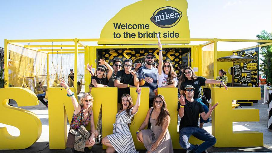 邁克檸檬水利用在大型節(jié)慶活動中消費者熱衷于品牌體驗的愿望,策劃并制作了“歡迎快樂”的活動。現(xiàn)場的設(shè)計在視覺上色彩鮮艷,并進行了品牌化的活動設(shè)計,其中包括消費者參與的幾個不同的區(qū)域,讓消費者可以品嘗、微笑,并分享他們對邁克檸檬水和活動現(xiàn)場氛圍的喜愛。