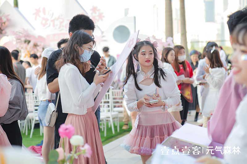 櫻花的盛放與飄零,美得短暫卻燦爛,在風(fēng)吹陣陣櫻花落之際,成就了今年春日最美好的 “邂逅”。在這浪漫櫻花之季,壹點(diǎn)壹客與元?dú)馍謹(jǐn)y手聯(lián)名,陪大家一起走花路,讓大家換個(gè)方式賞櫻,現(xiàn)場(chǎng)也以粉色和櫻花為靈感,營(yíng)造出了非常青春洋溢的氛圍!