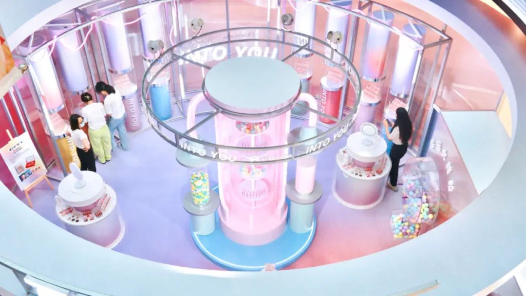 在快閃店的設(shè)計(jì)上,INTO YOU心慕與你和luckin coffee瑞幸咖啡結(jié)合了品牌特色和當(dāng)下Z世代年輕群體的喜好,以「夏日」、「水霧」、「色彩」等為靈感,打造了具有夏日繽紛色彩與水霧清新質(zhì)感的快閃店。