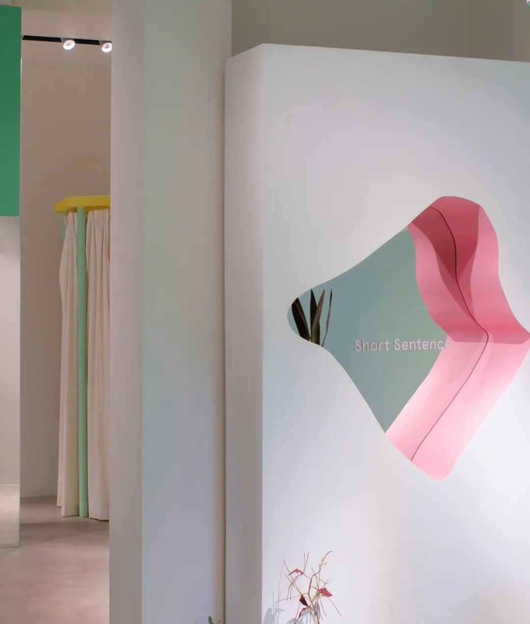快閃店?One’s own island?這次在不同空間用不同觸感的草皮來模擬不同形態(tài)的島嶼質(zhì)地,標(biāo)志性的浪漫粉色基調(diào)被打散在各個空間中:有親手上色的粉色綠植、粉色mini石 、粉色島嶼頂層、粉色鏤空形衣架等等。快閃店的空間設(shè)計從入口處開始打造“登島”氛圍,穿過一個植被走廊就進入到空間之中,這讓觀眾的體驗感更加豐富。圍繞One’s own island的島嶼主題,空間內(nèi)還設(shè)計了一系列裝置,例如島嶼形狀的座位和植被裝置,從墻縫里生長出來的植物等細節(jié),自然與現(xiàn)代裝置的結(jié)合,完美平衡,新鮮感剛好處于讓人舒服的程度。